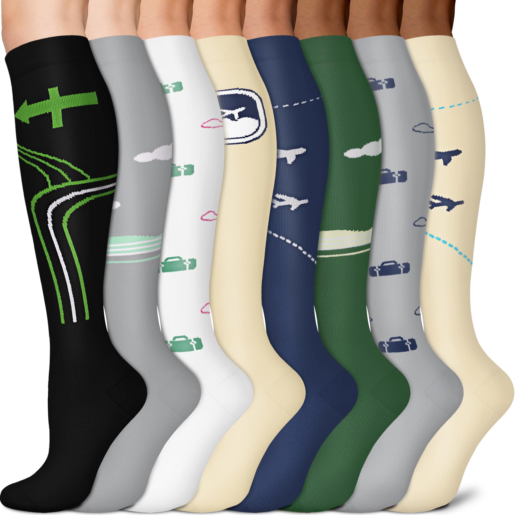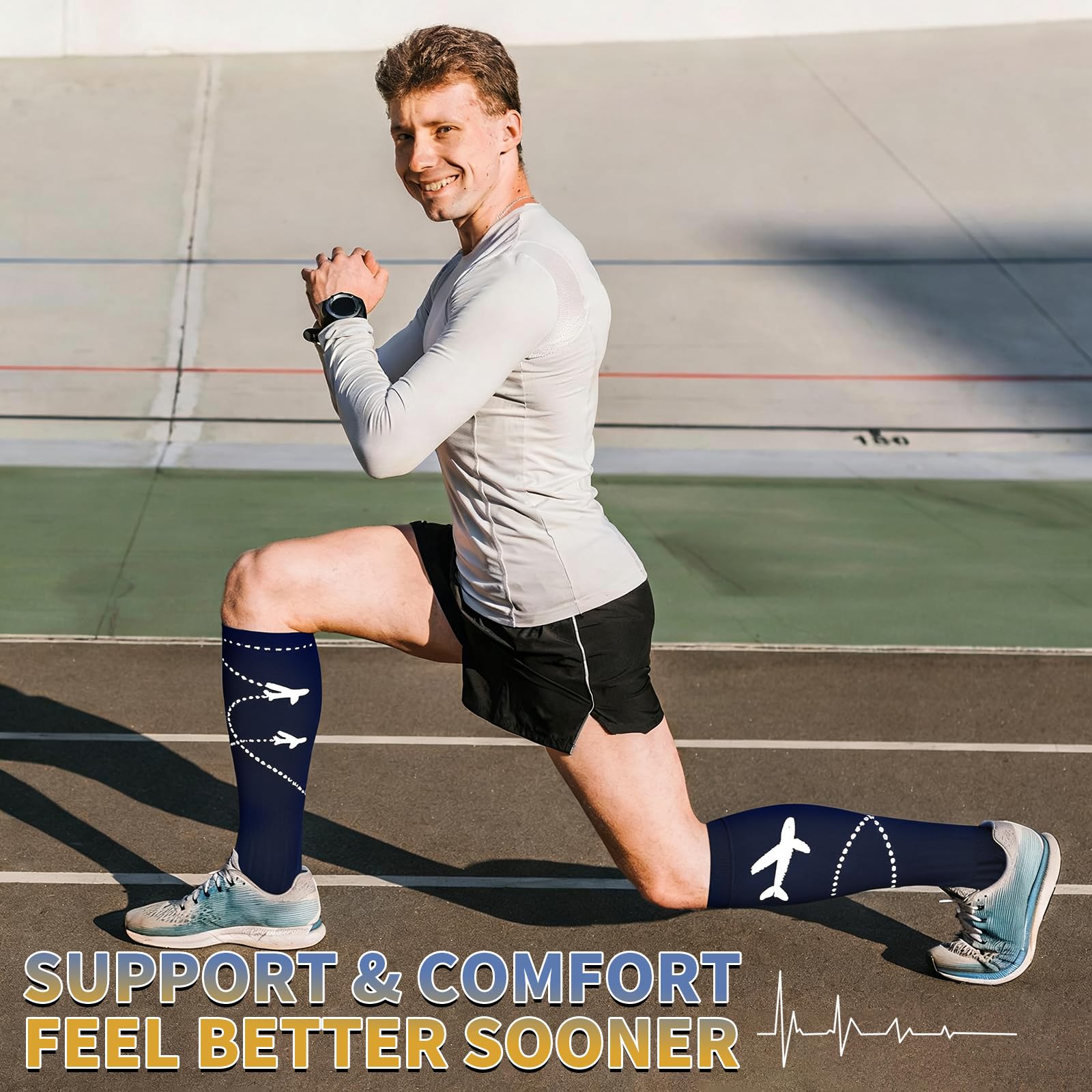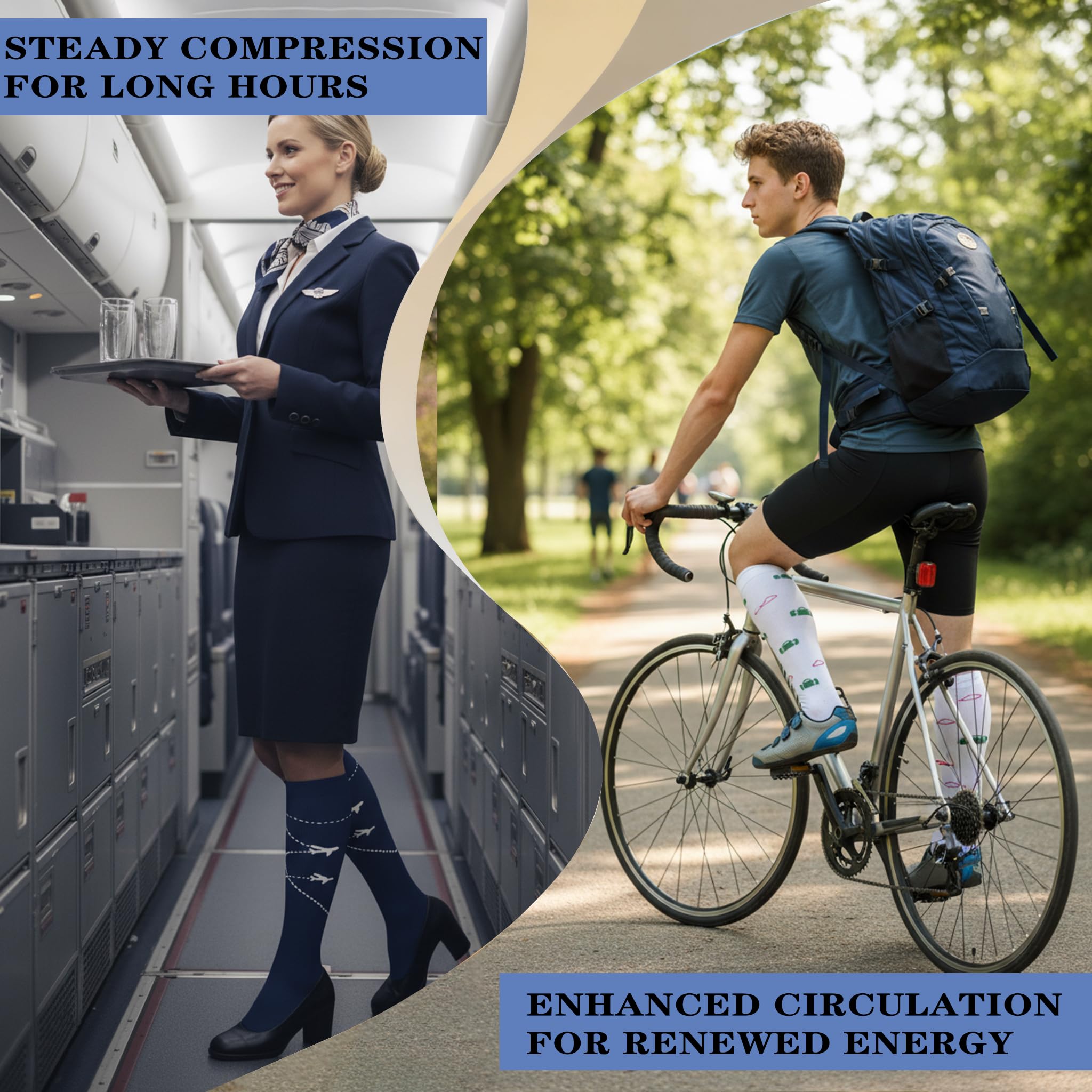 Reduce Injuries - Provide mild squeezing for warmness and enhance blood moving through your legs. Remove stress and stimulate every cell, relieves symptoms varicose veins and excess fluid retention. Help relieve pain & discomfort related to plantar fasciitis, Provides true graduated compression to support your legs, reduce fatigue, soreness, cramping and prevent injuries at the same time.