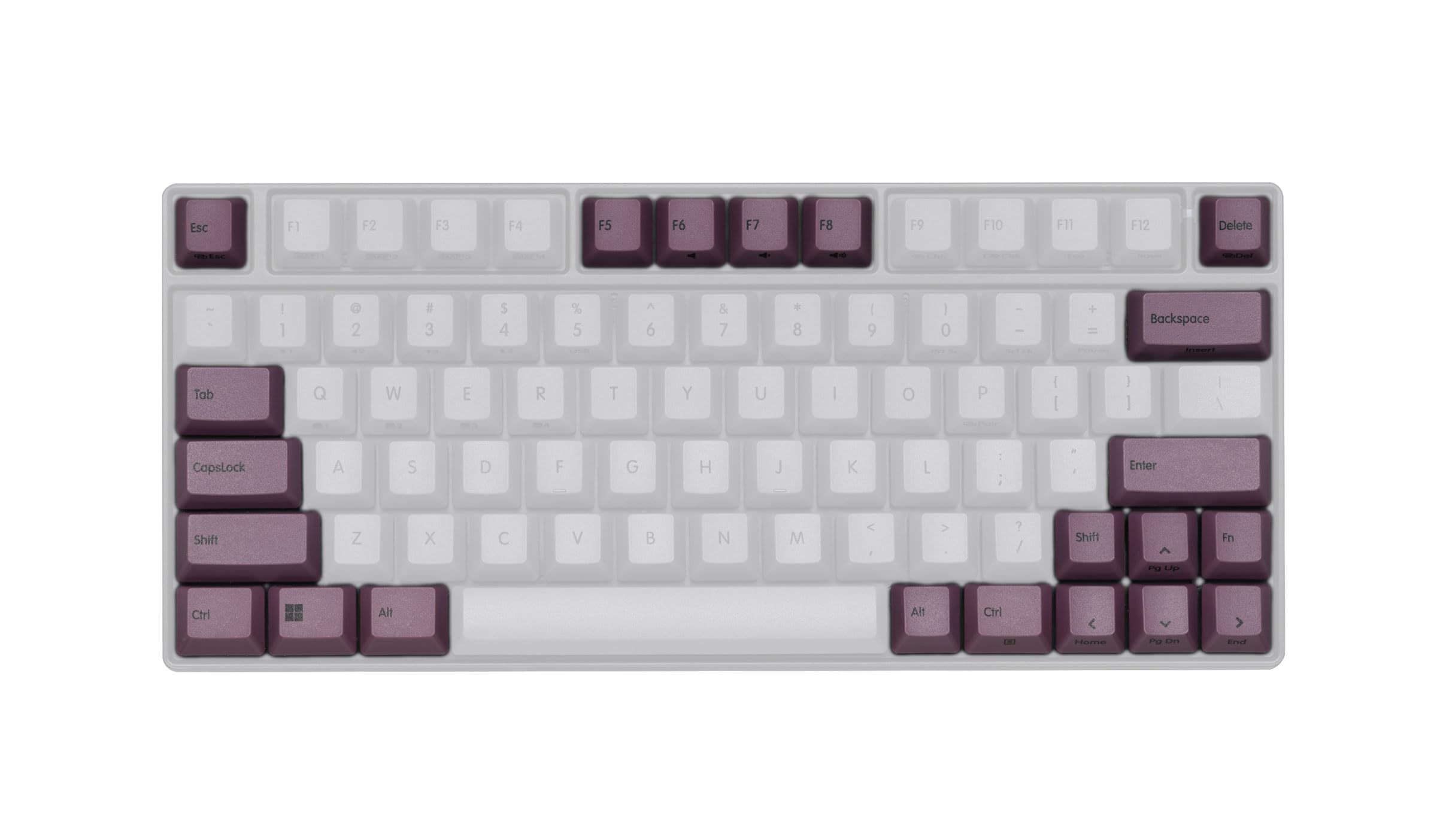 Designed and manufactured by Realforce to fit the Realforce RC1 keyboard. This keycap set is available in several colors in two different kits: alpha and modifier. The modifier kit (22 keys) includes modifier keys, Escape key, Delete key, arrow keys, and F5 to F8 keys. The Alpha kit (56 keys) includes letter keys, symbol keys, number keys, spacebar, and some function keys (F1 to F4, F9 to F12).