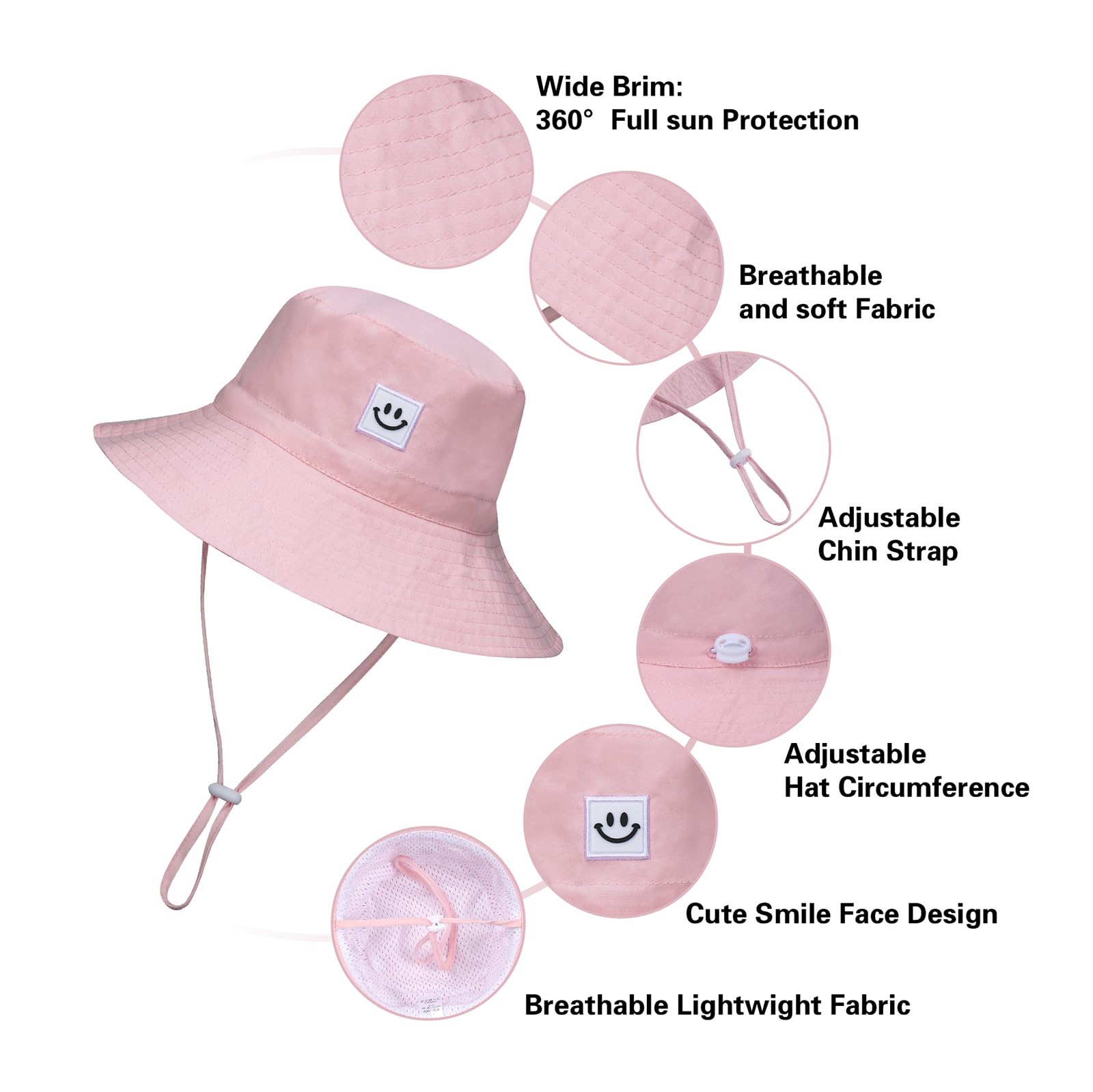 Material: The smile face baby sun hat made of high quality polyester(UPF 50+ UV sun protective fabric), quick-drying, breathable toddler sun hat keeps baby cool and comfortable