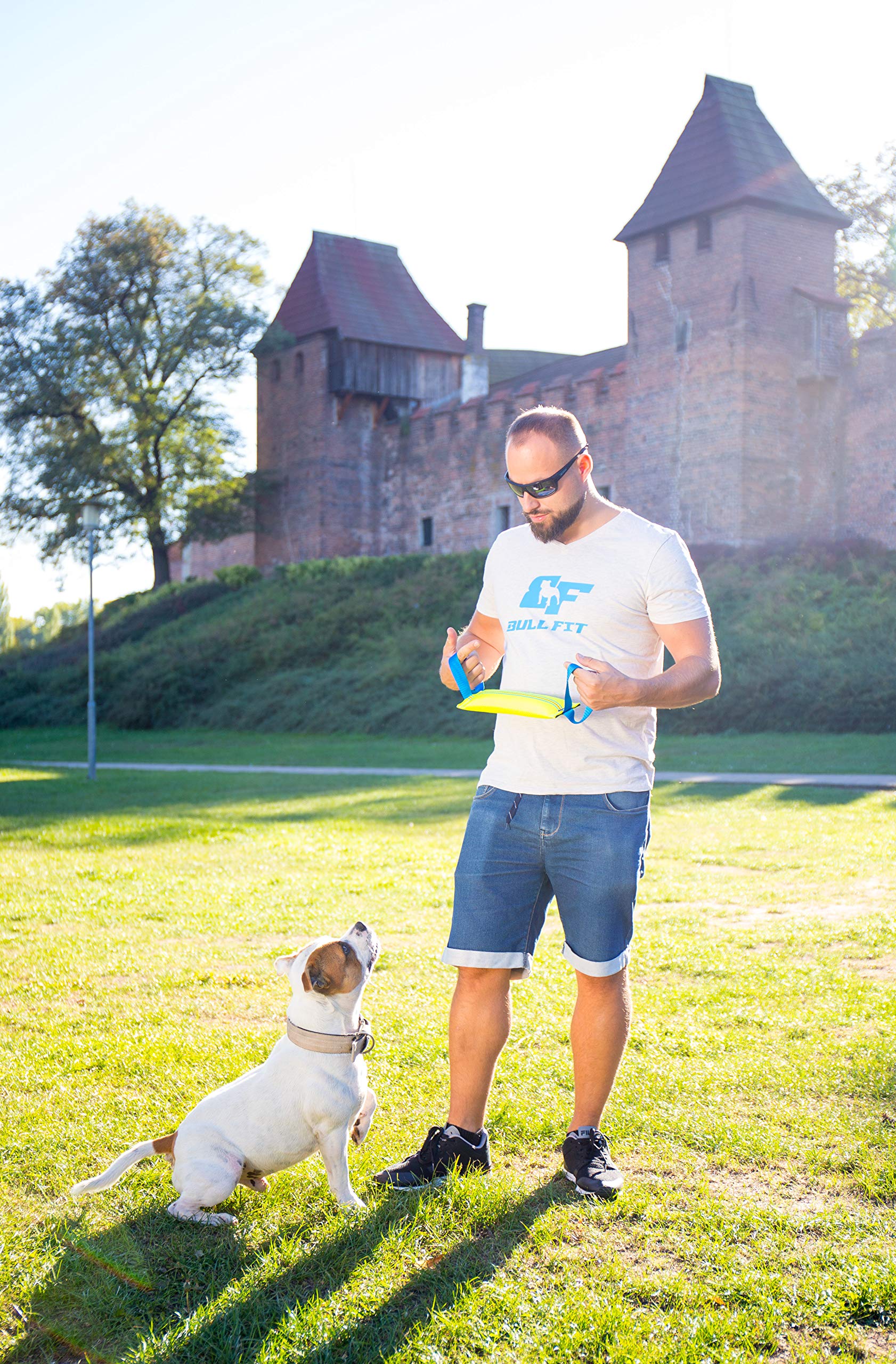 Multipurpose, dogs love it - We believe that interactive play will help strengthen bond between you and your furry buddy, keep him happy and healthy. Bull Fit tug is great reward and exercise toy, suitable for indoor and outdoor play. It’s designed for tug of war, Schutzhund, agility, weight pulling, spring pole workout and more!
