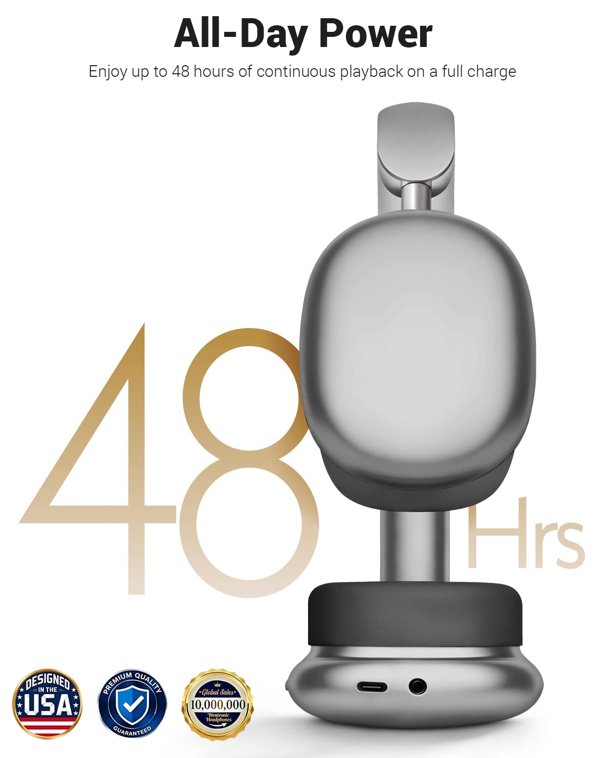 Up to 48 Hours Playtime & Dual Modes - Enjoy up to 48 hours of continuous playtime on a single charge. When the battery runs low, simply plug in the included 3.5mm audio cable to switch seamlessly from wireless to wired mode—ensuring your music never stops, even on long journeys.