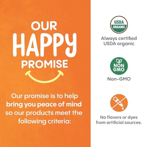 Our Happy Promise: All products are certified USDA organic, made with non-GMO ingredients grown without the use of toxic persistent pesticides
