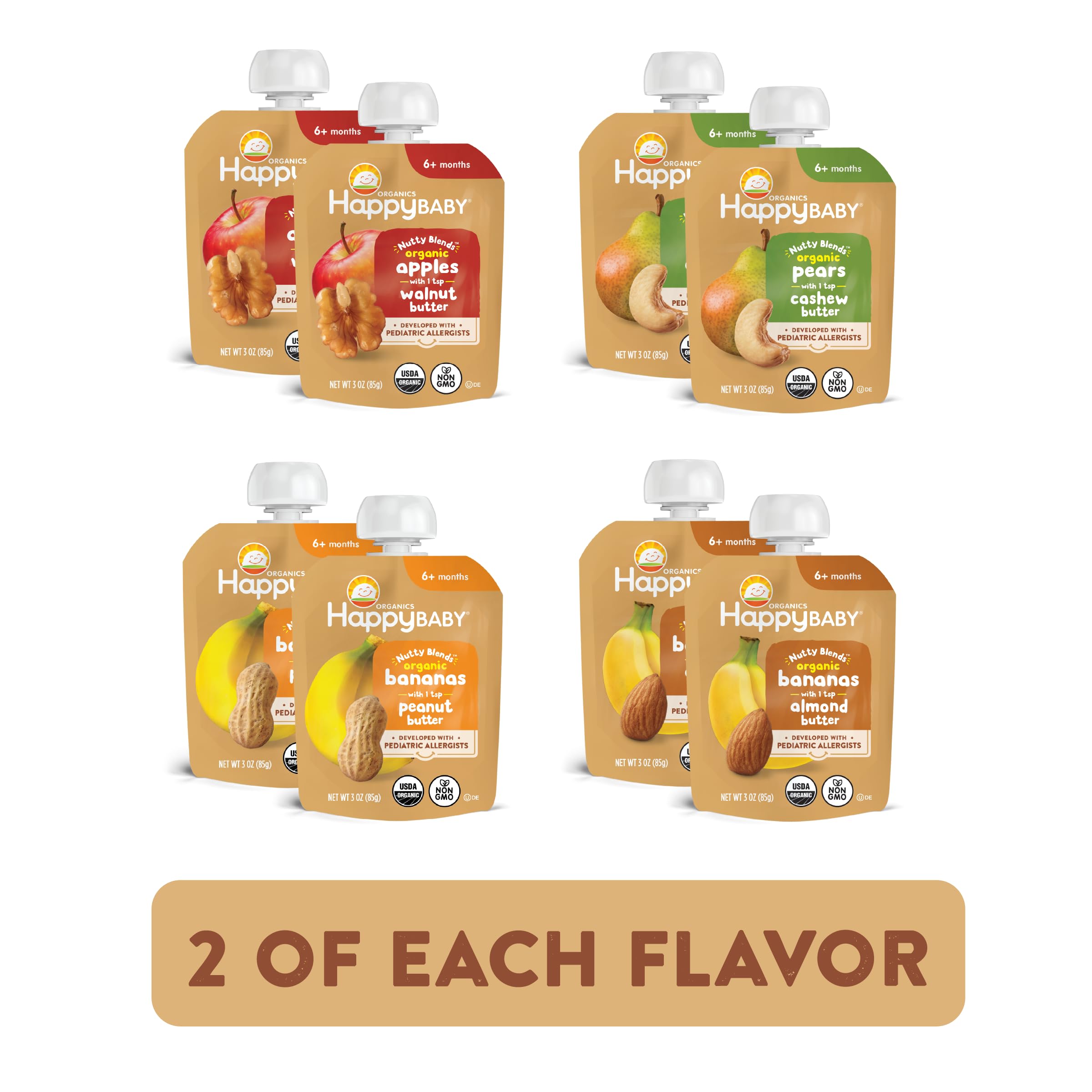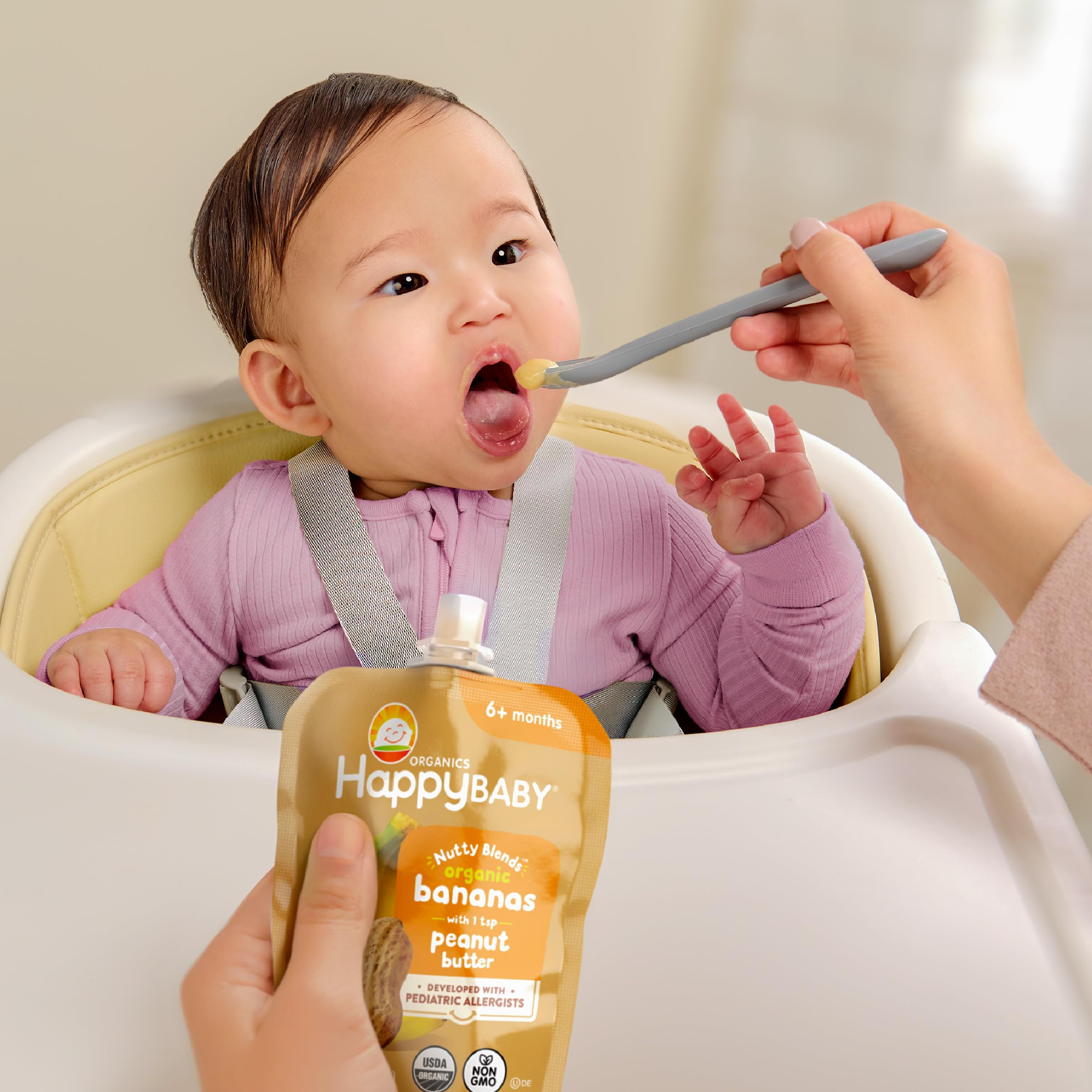 Developed with Pediatric Allergists: Happy Baby Nutty Blends are the developed with pediatric allergists, to help introduce and include nuts in baby’s diet. The Dietary Guidelines recommend introducing allergens early & often