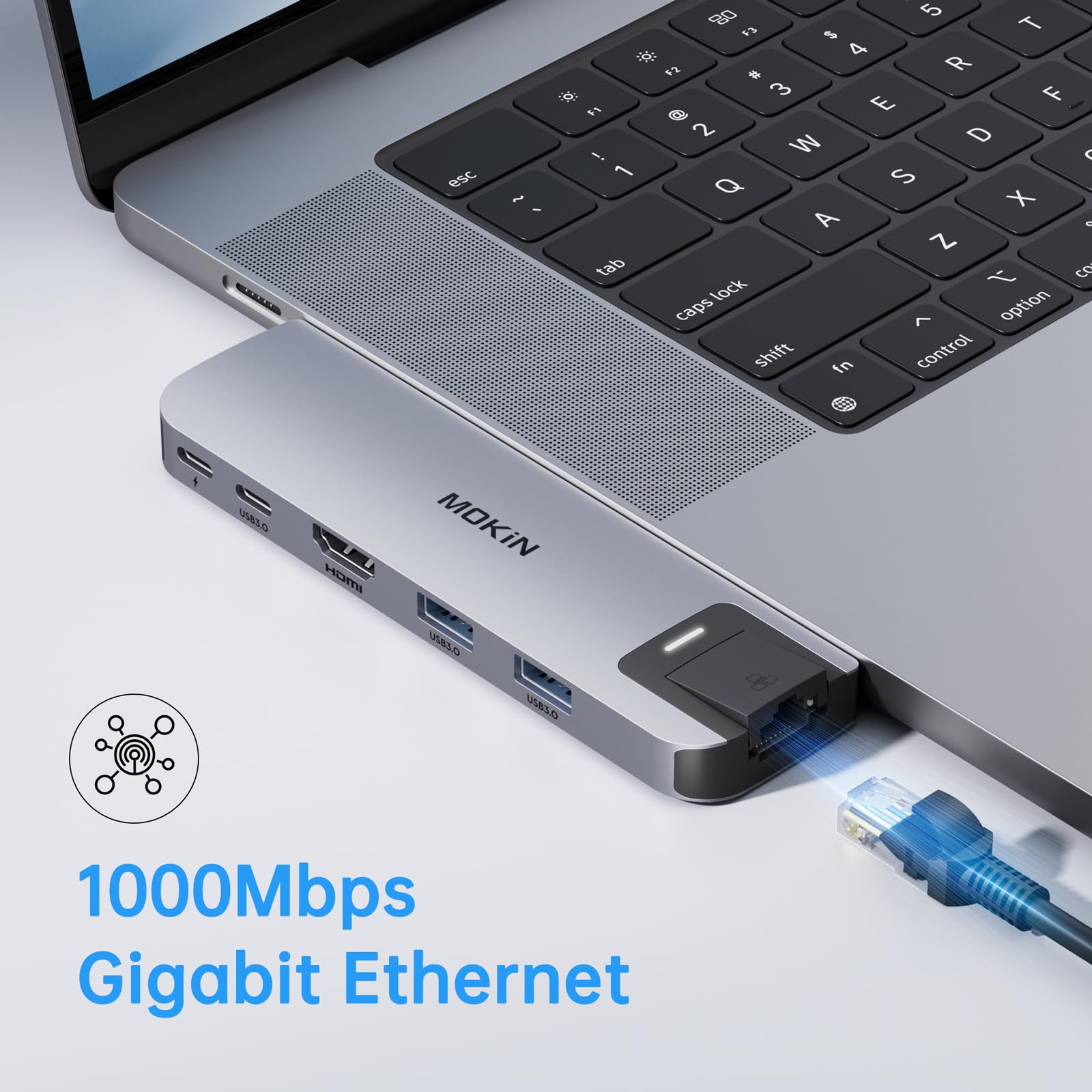 【Gigabit Ethernet】Multiport MacBook Adapter have a Gigabit Ethernet Port( up to 1000Mb/s),Gigabit Ethernet port provides a more stable and faster wired network, Make your office more stable and gaming more enjoyable.
