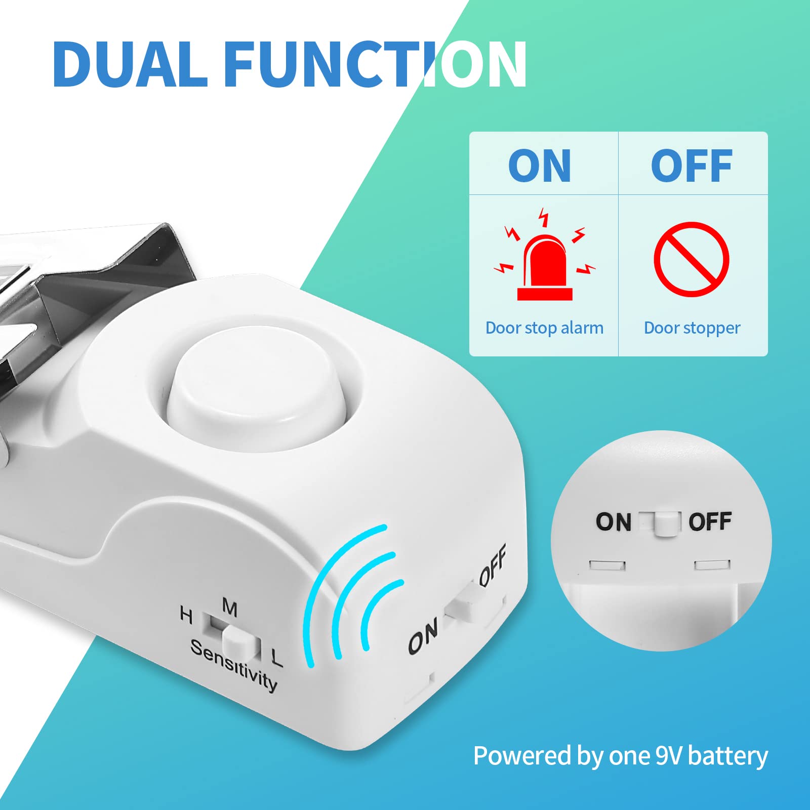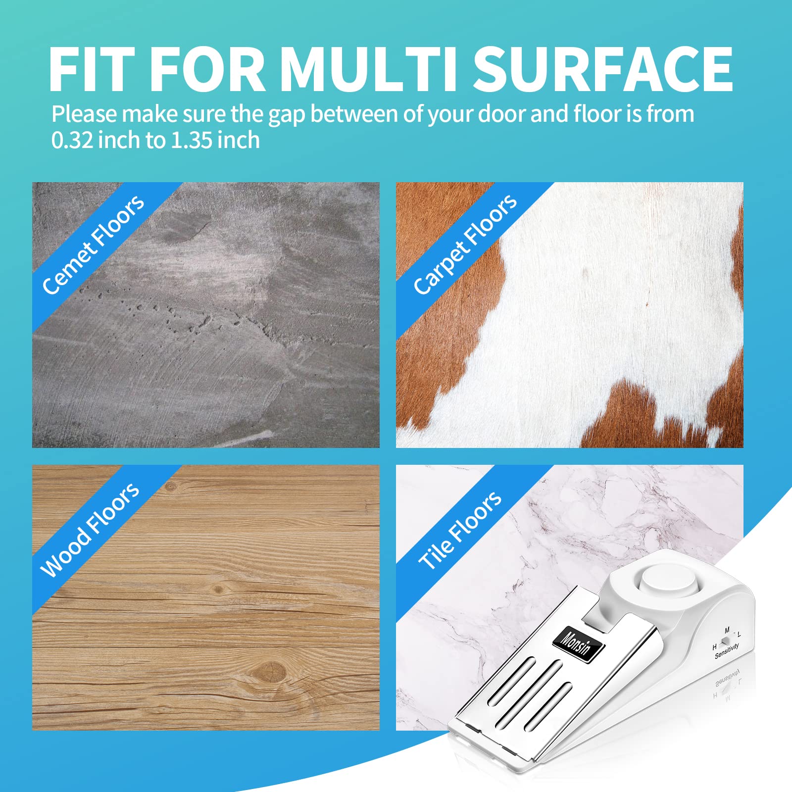 [Dual Function]: Can be used as a door stop alarm and door stopper, Its high damping rubber bearing can prevent the door sliding and prevent the bad guys into.