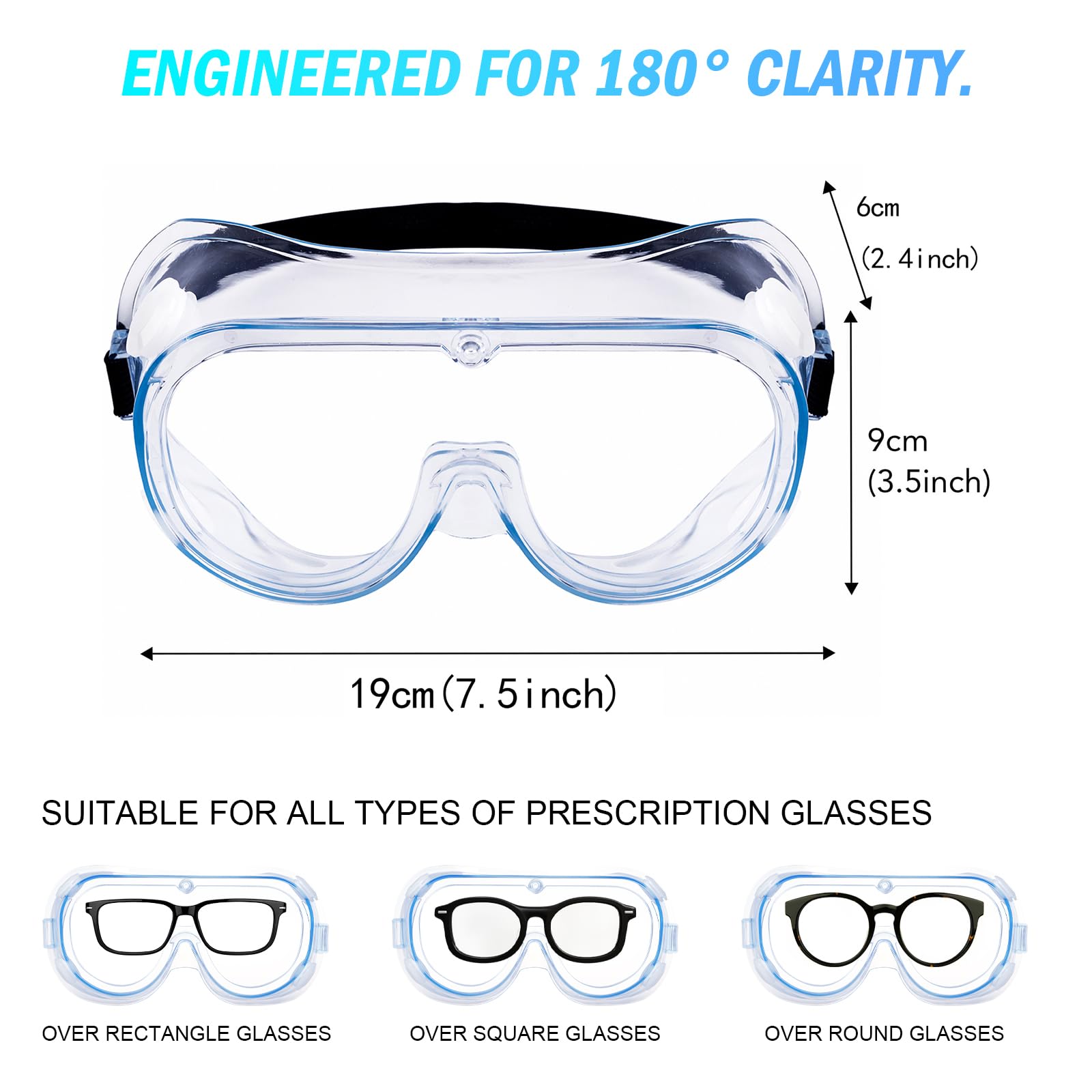 Comfortable Goggles - Soft, wrap-around PVC frame offers maximum comfort, fits over most prescription eyewear, adjustable elastic strap fits all head sizes, one-size-fits-all.
