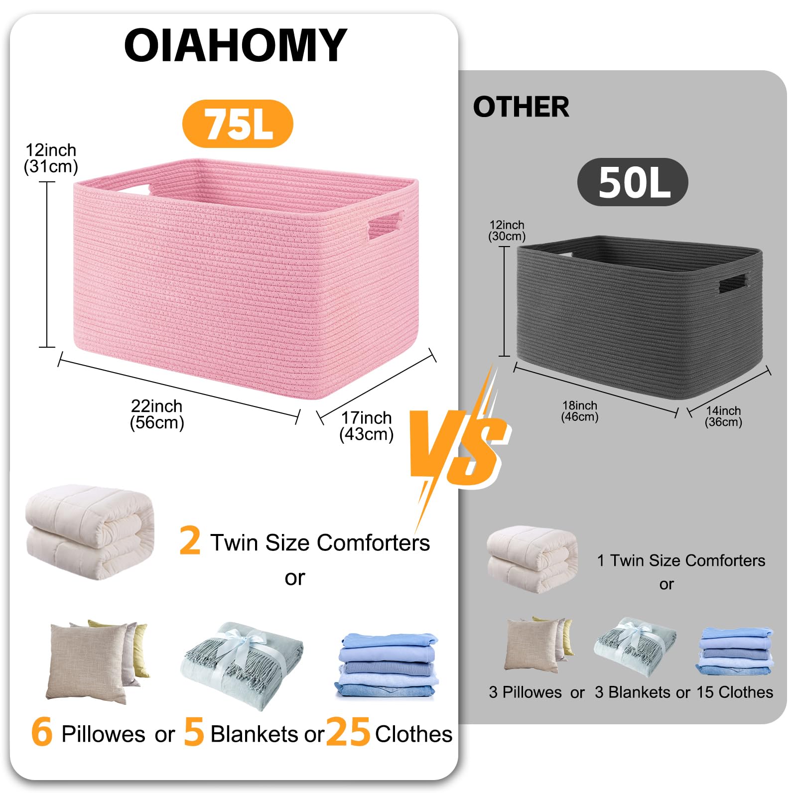 Large size Blanket Basket:22”x17”x12”, which perfect for throw pillows,cushions,blankets, comforter,toys and clothes.Keep in the kids room, family room, or any room in the house that could use extra storage: fits on a closet shelf, beside the sofa or bed