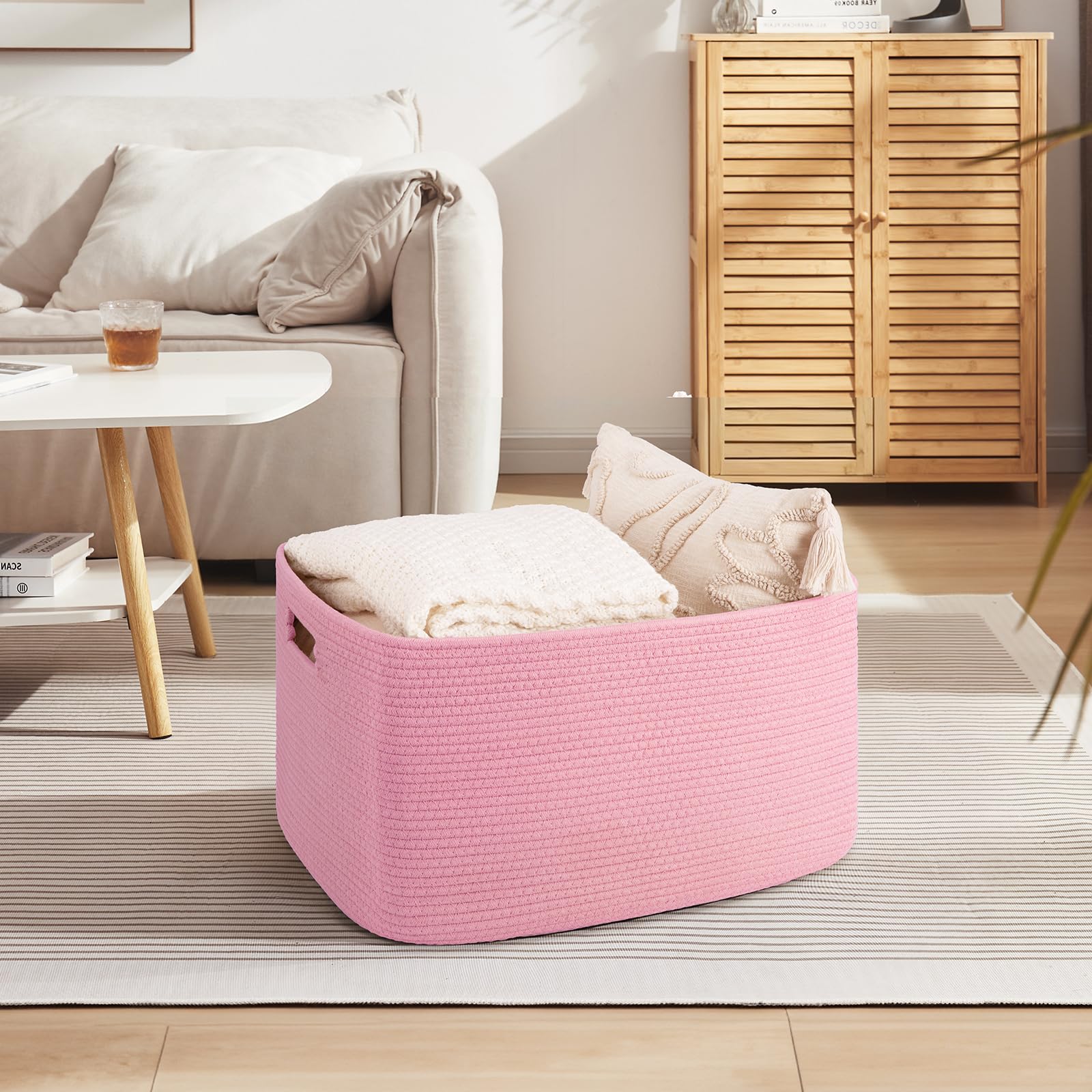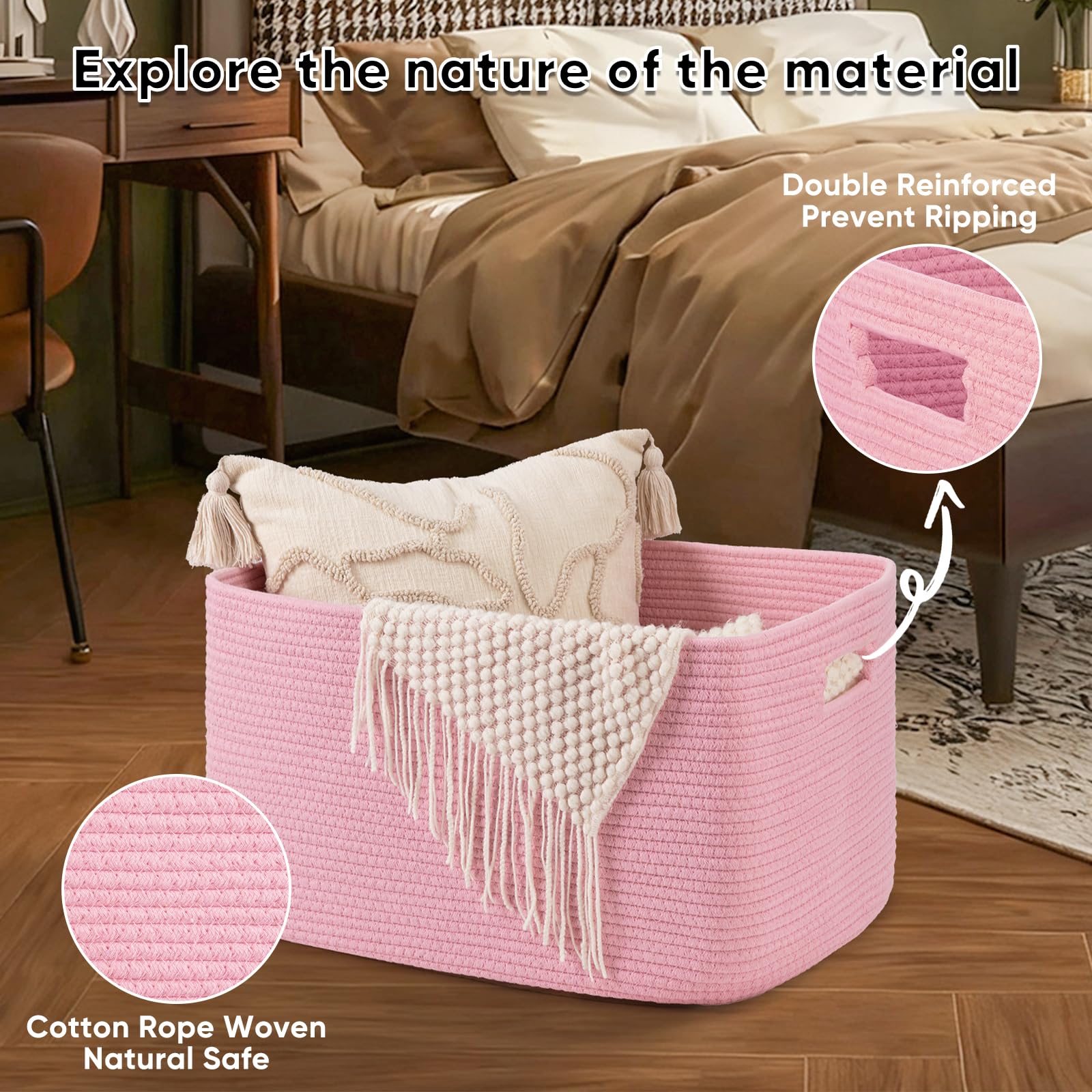Double reinforced Handles:We use the highest grade cotton rope as raw material and all the stitches are distribution and fine,which makes the toy baskets better wear resistance and durability to be used for many years.In addition, the handle of this large basket has a unique design and is wrapped around with thick double-layer suture rope to prevent tearing and keep its shape and never fall off