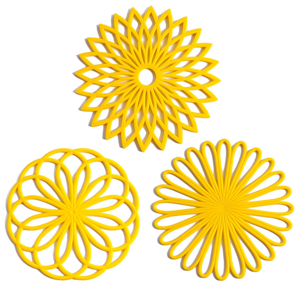 Decorative and Color Your Home: This silicone trivet set has 3 different designs to decor your home. Practical and useful hot mats for kitchen but also work great to enhances the decor to your Dinner room, Terrance and any other place at home.