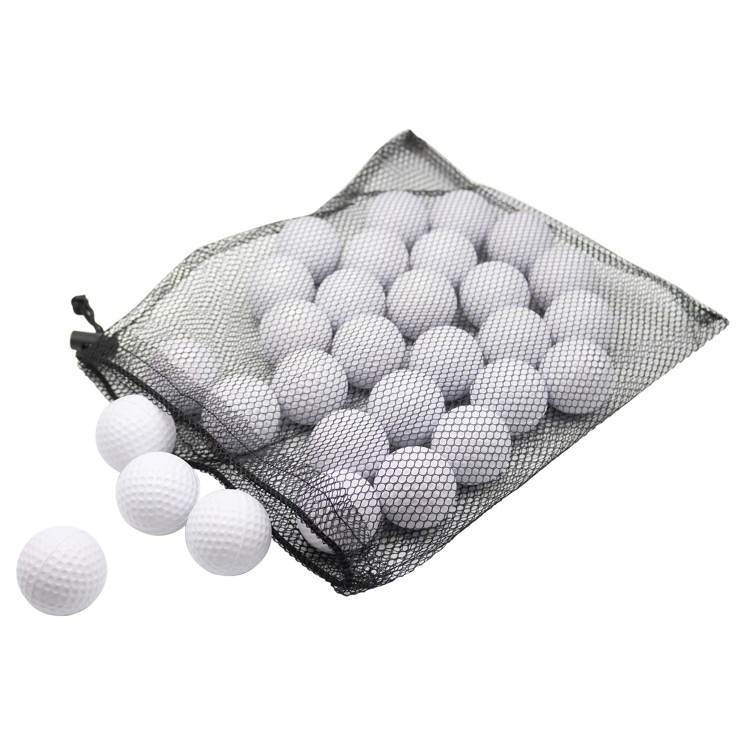 Package Including: 30 pcs white foam golf balls. Come with 1 mesh drawstring storage bag.