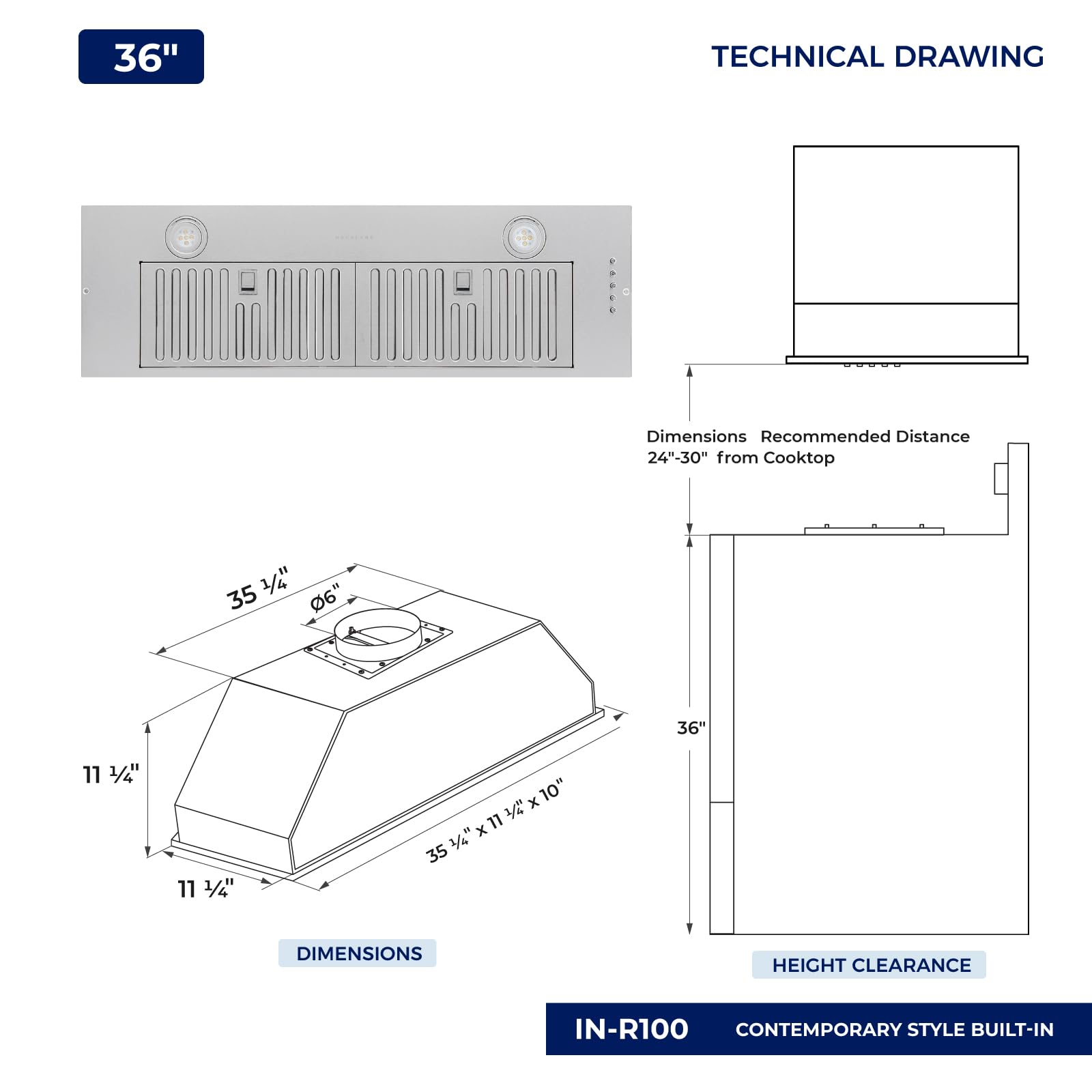 TIMELESS RECESS DESIGN: This insert range hood 36 inch won’t take away from your kitchen’s look. With the recessed design, you won’t even know it’s there- until you turn it on and watch it suck away fumes, smoke, and odors fast.