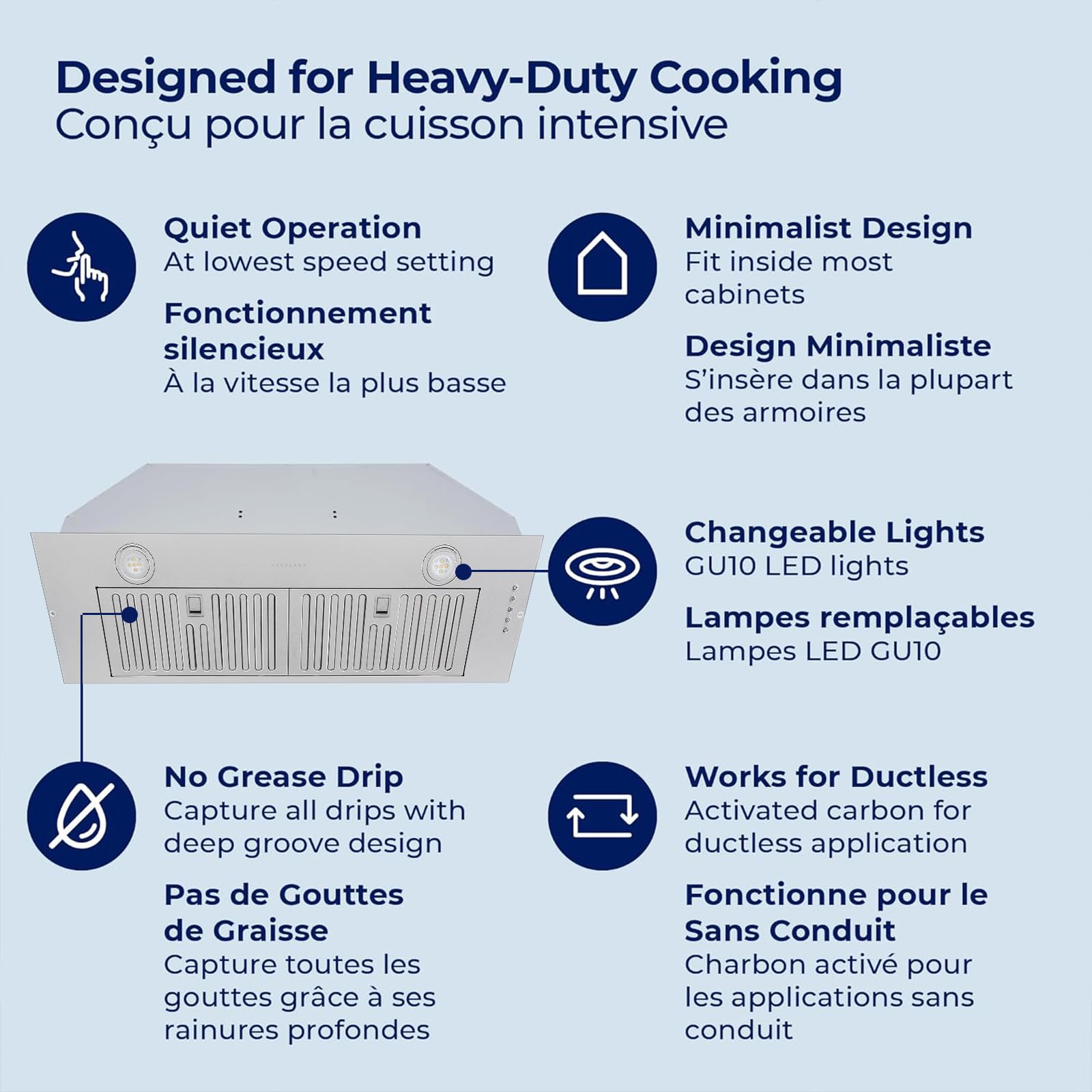 HEAVY-DUTY COOKING: You love to explore new techniques and need appliances that can keep up. This range hood vent insert is here for all of your heavy-duty cooking needs such as boiling, steaming, poaching, braising, frying, searing, and sauteing