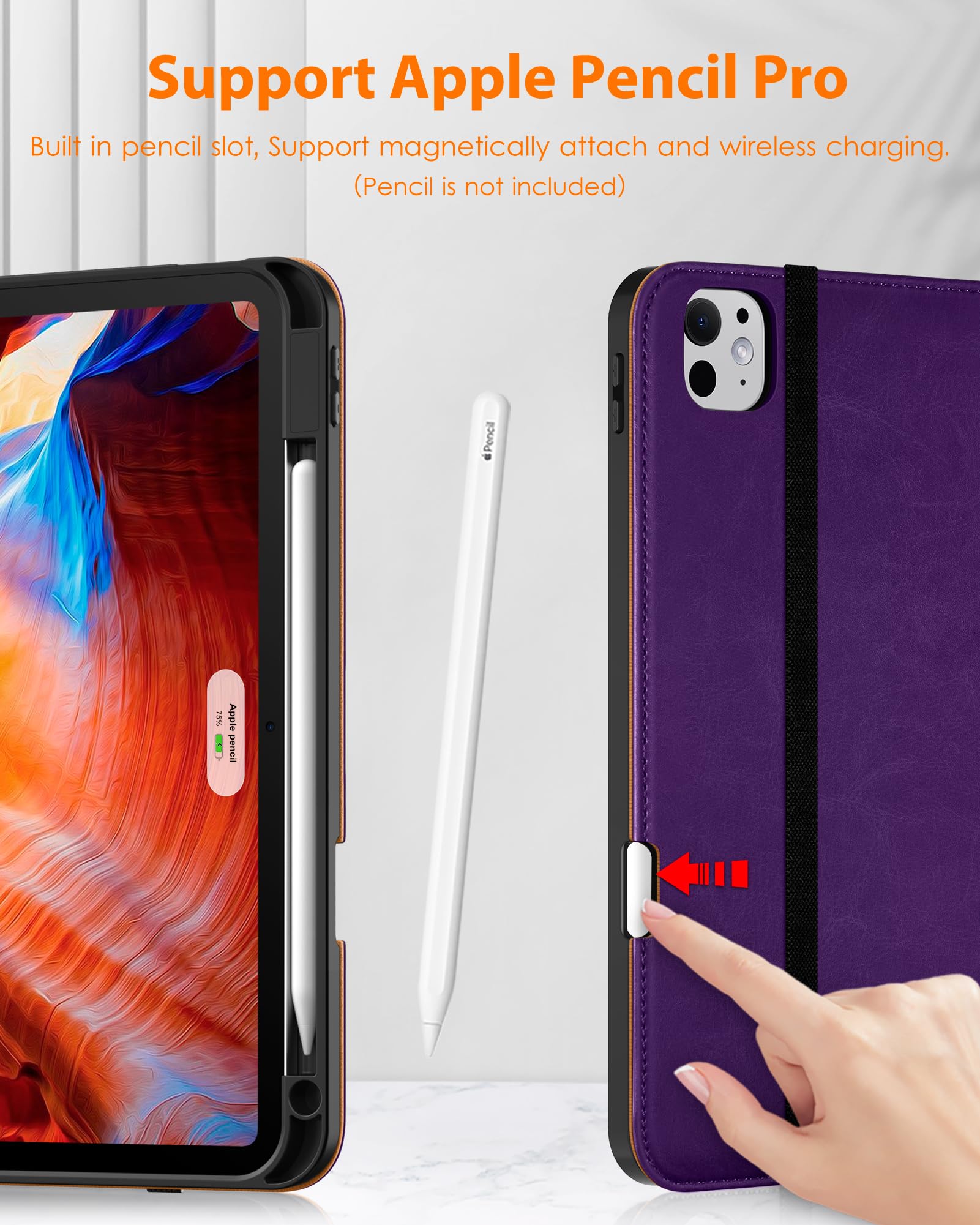 Built-in Pencil Holder - Securely carries and protects your pencil wherever you go. A hole has been designed at the back of the pencil holder that you can easily push pencil out without taking off your iPad Pro 11 (M5/M4) case
