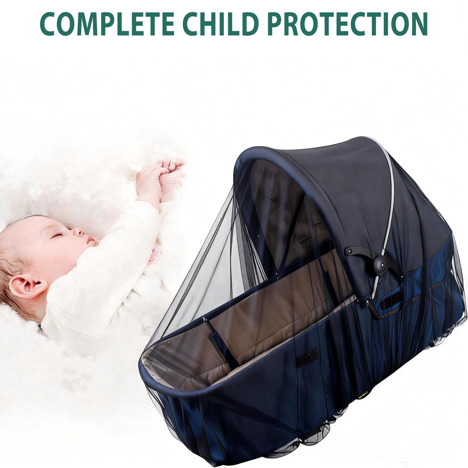 ODORLESS AND DURABLE MATERIAL - This stroller netting is made of polyester with breathable fabric, allows for air flow and circulation to keep the baby comfortable and cool during use. No deet or any other chemical repellents.