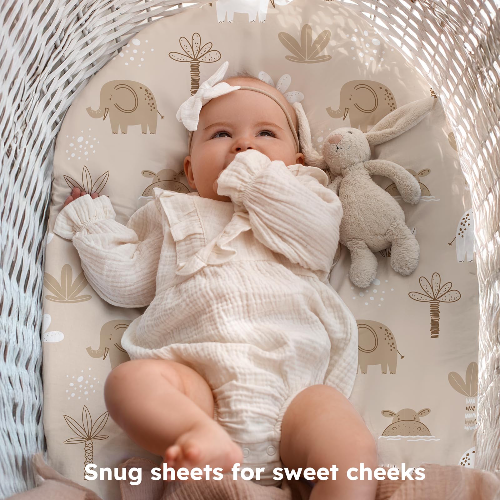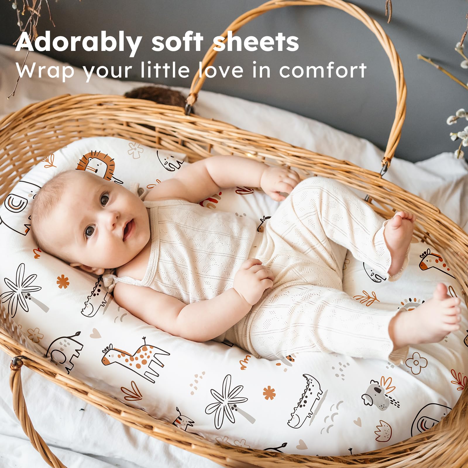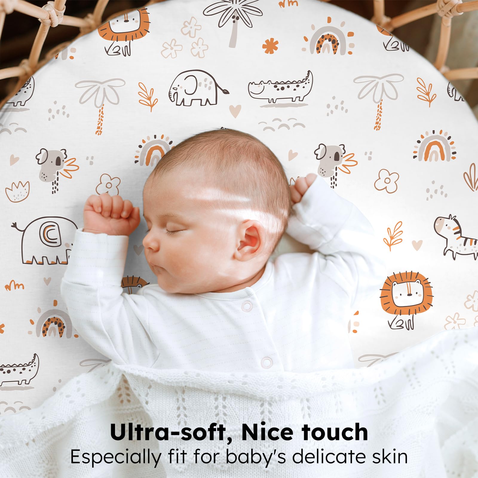 Soft & Skin-friendly Fabric: Crafted from premium microfiber with advanced knitting techniques, our baby bassinet sheets are ultra-soft and gentle enough for delicate and sensitive skin. Designed to keep your baby comfortable and relaxed, they help maintain a restful sleep environment and daytime moments full of joy.