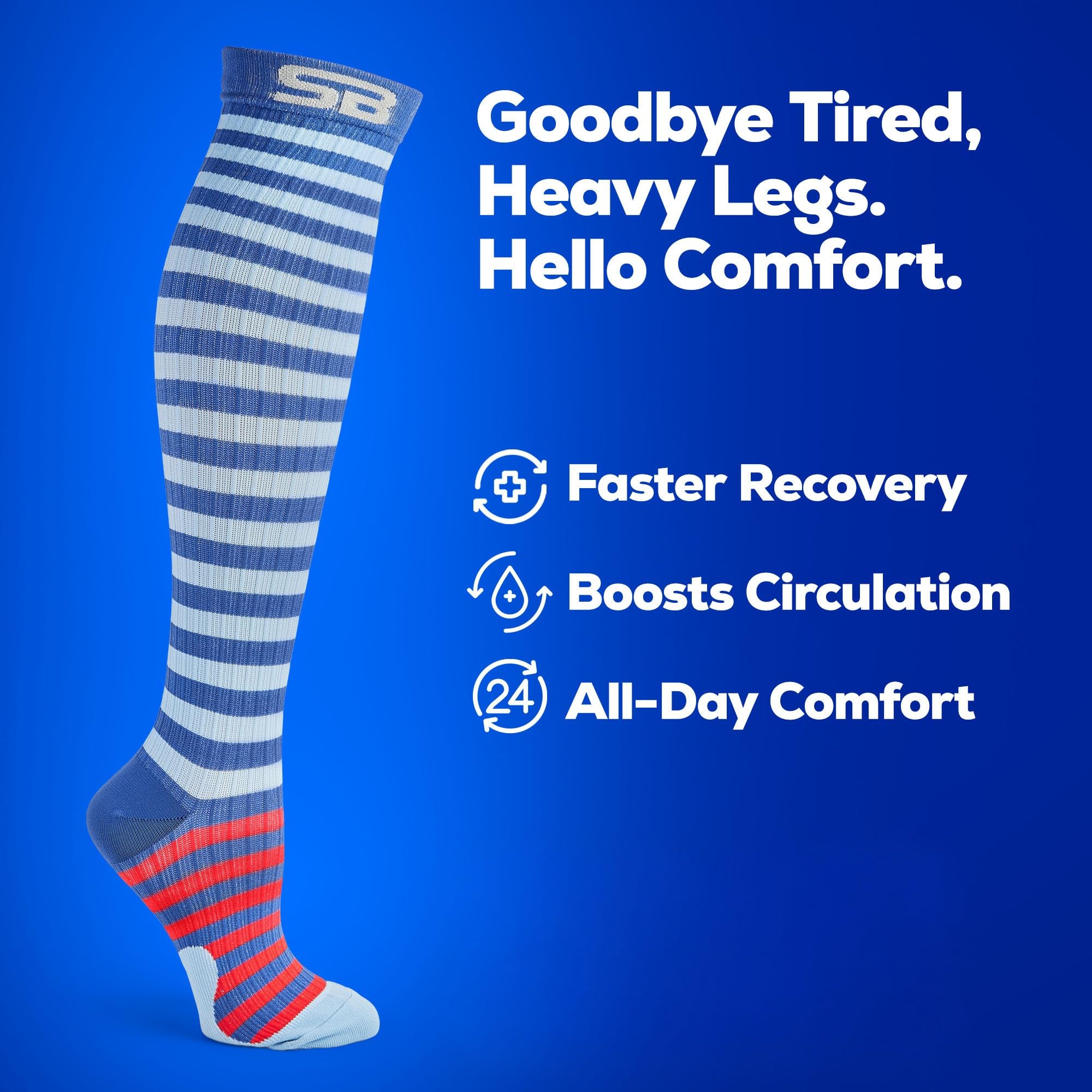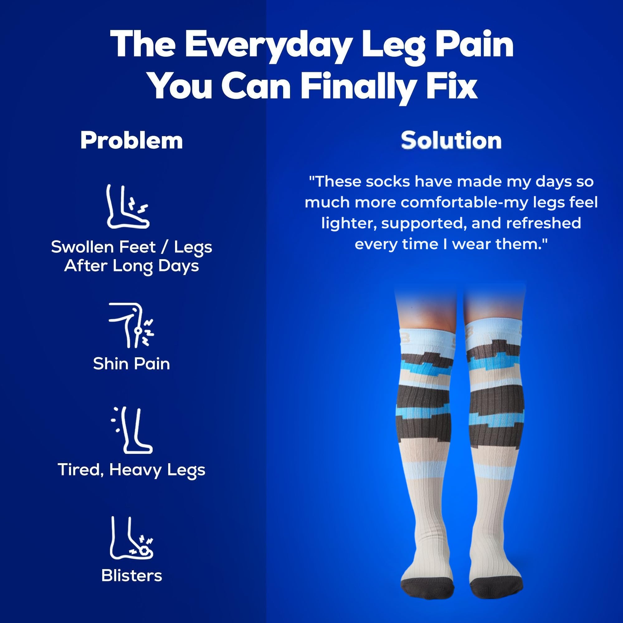 Decrease Swelling and Fatigue: Our graduated compression socks provide the ideal compression to improve blood flow to relieve swelling and fatigue in your feet and legs. Great for any activity!