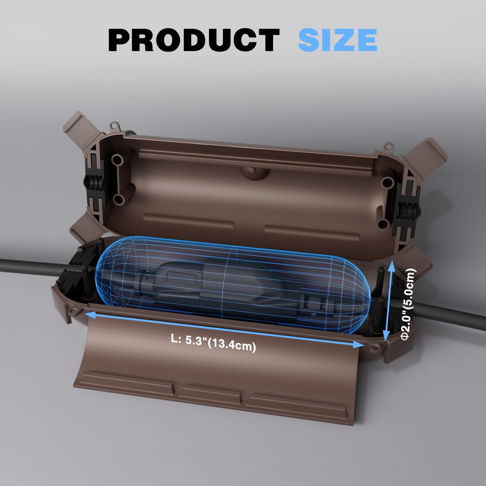 Designed to protect your connection from elements. Outer size for this extension cord box is 2.3" x 2.3" x 7.1" and its inner size is 2.0" x 2.0" x 5.3". The diameter of entry port is 10mm that perfect to seal 14/16/18 gauge cord, braided cable and flat wire and outdoor lights.