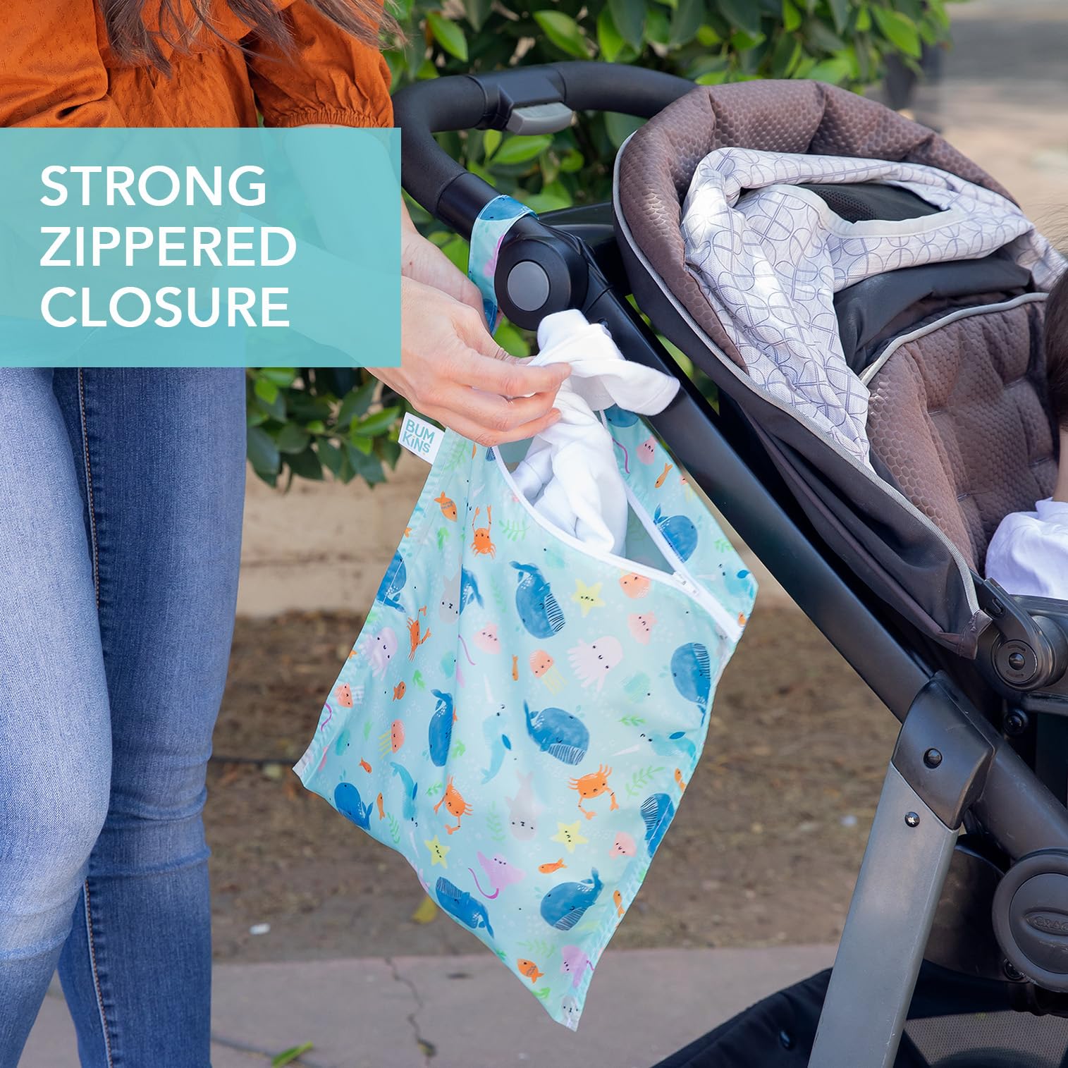 REUSE AND REDUCE WASTE – A smart alternative to single-use plastic bags, our bags are made from Bumkins' original waterproof fabric that’s both soft and strong (although fabric is waterproof, bags are not completely leakproof due to zippered closure)