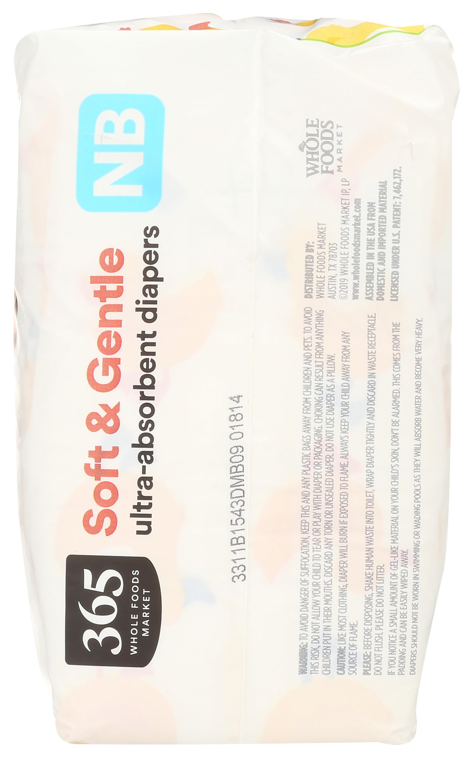 365 by Whole Foods Market, Soft & Gentle Newborn Diapers with Wetness Indicator, Ultra-Absorbent, Hypo-Allergenic, 36 Count