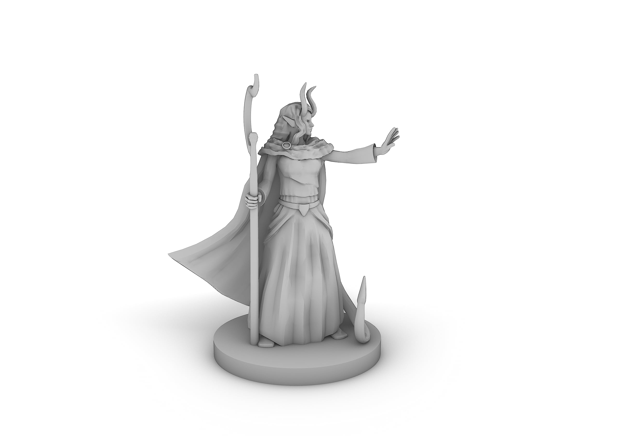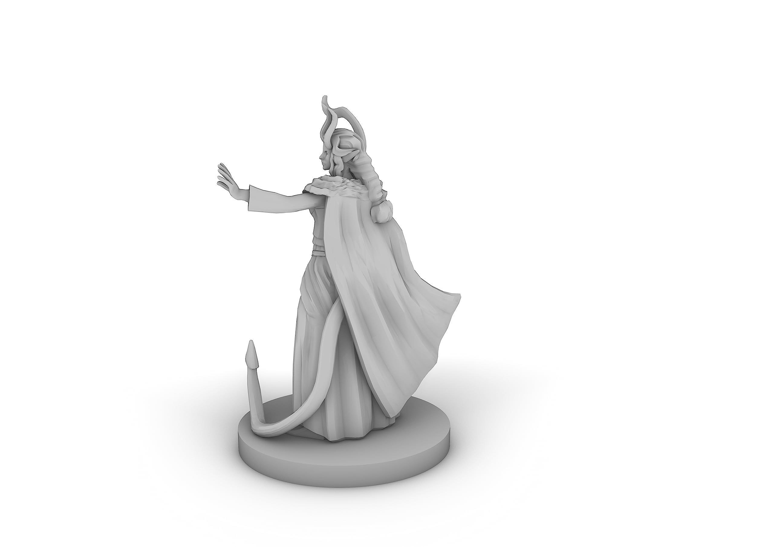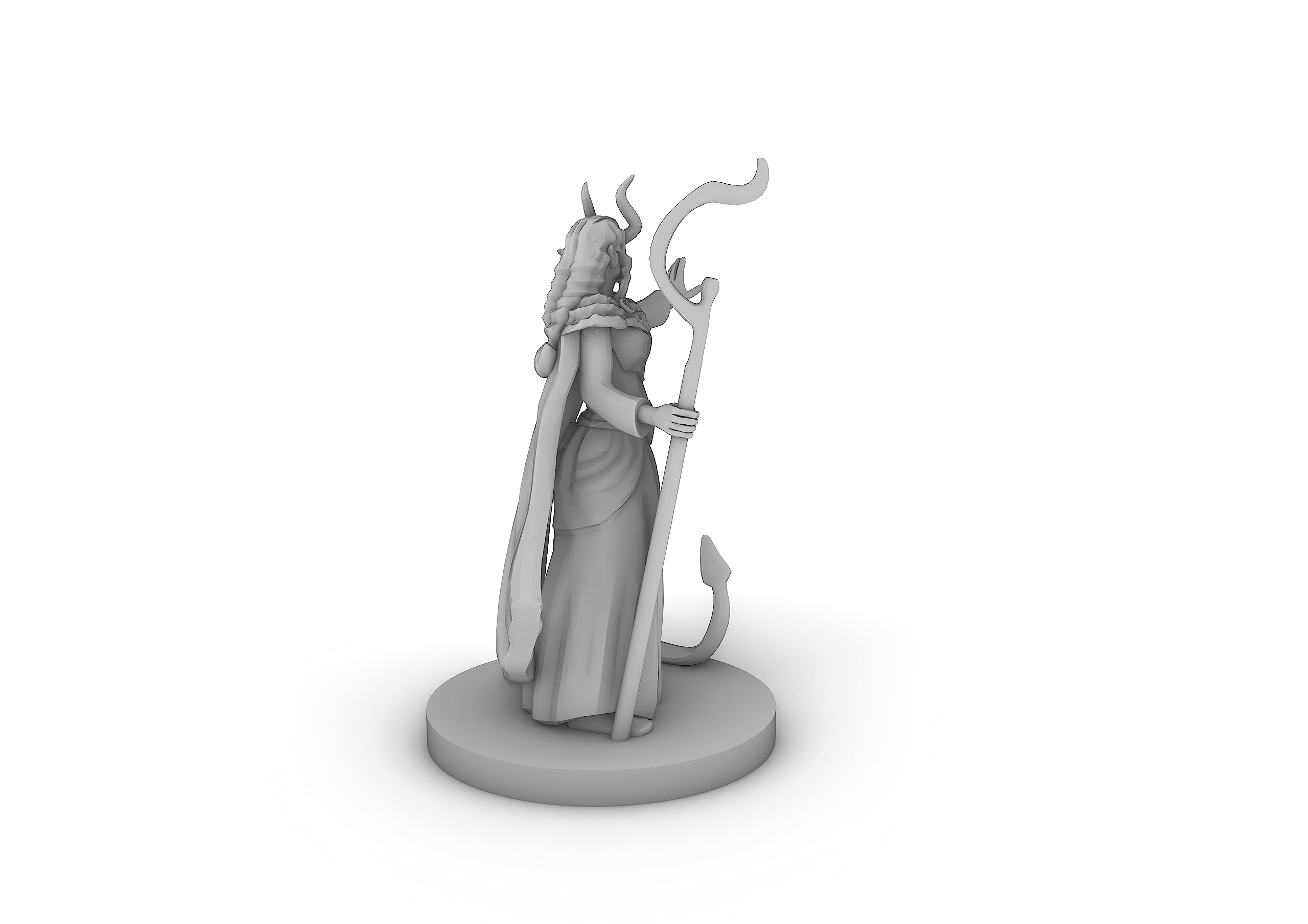 This Is a Tiefling Female Druid Tabletop DND Gaming Miniature 3d printed in high quality resin. These pieces are great for any tabletop game and add a new depth to your play and characthers! Piece size ranges depending on the piece if its marked medium or larger it will be bigger than a standard piece of 26mm. All Pieces are printed in high quality grey photopolymer resin ensuring no seams, no visible layer lines and an easy to paint game piece!