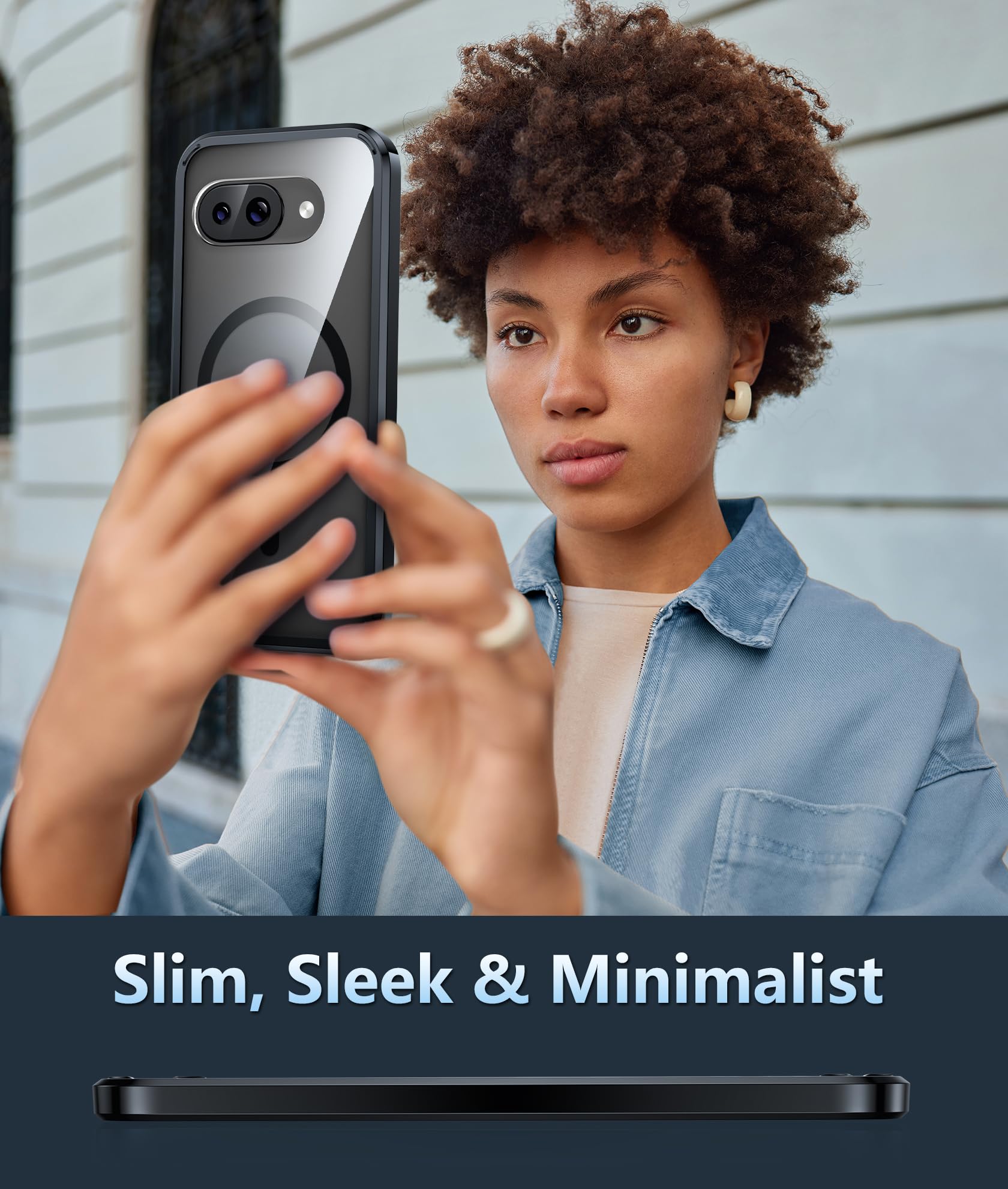 10FT Military Grade Protection: Passed Military Drop Tested up to 10 FT. This Google Pixel 9a clear case backplane is made with rigid polycarbonate and flexible shockproof TPU bumpers around the edge and features 4 built-in corner Airbags to absorb impact