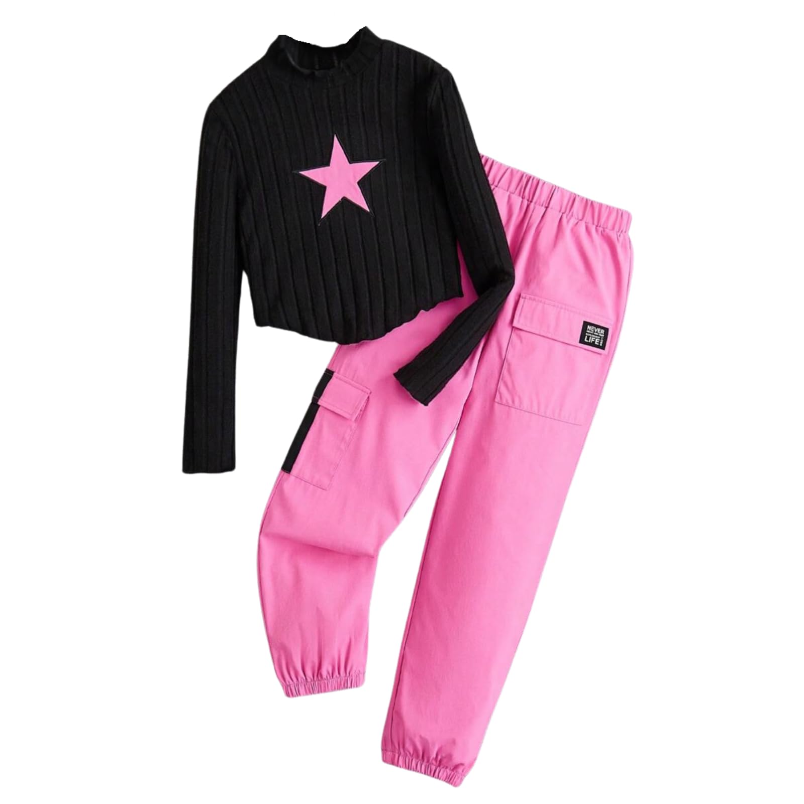Package Includes & Care Tips: Girls 2 piece outfits includes: 1 knit top + 1 cargo pants with 2 pockets. Recommended hand wash or cold machine wash, tumble dry low, do not bleach.