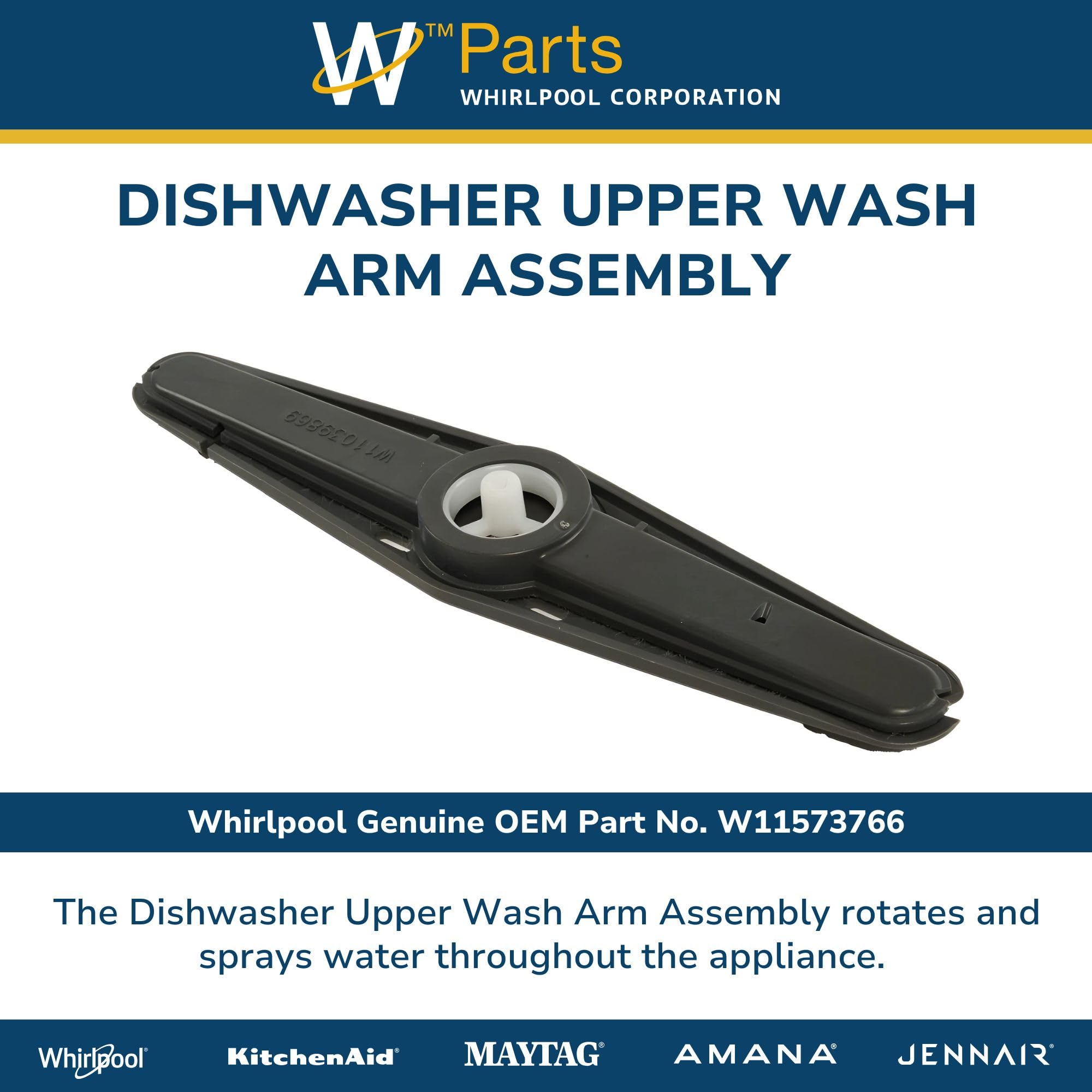 REPLACEMENT PART NUMBERS: W11573766 Dishwasher Upper Wash Arm Assembly replaces the part numbers W11039869