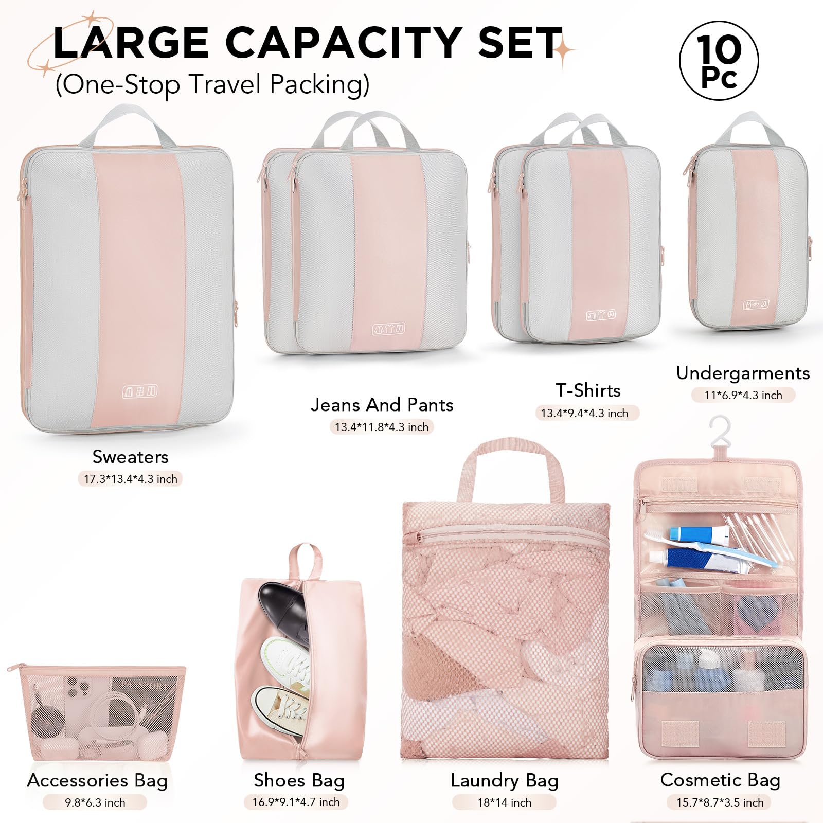 Ready for Any Adventure - Whether you’re heading out for a weekend getaway, a business conference, or a month-long backpacking trip, This high-capacity 10-piece compression cet seamlessly accommodates 20-32-inch suitcases of all types. We’re here to ensure you travel smarter, pack better, and enjoy every moment of your journey with peace of mind.