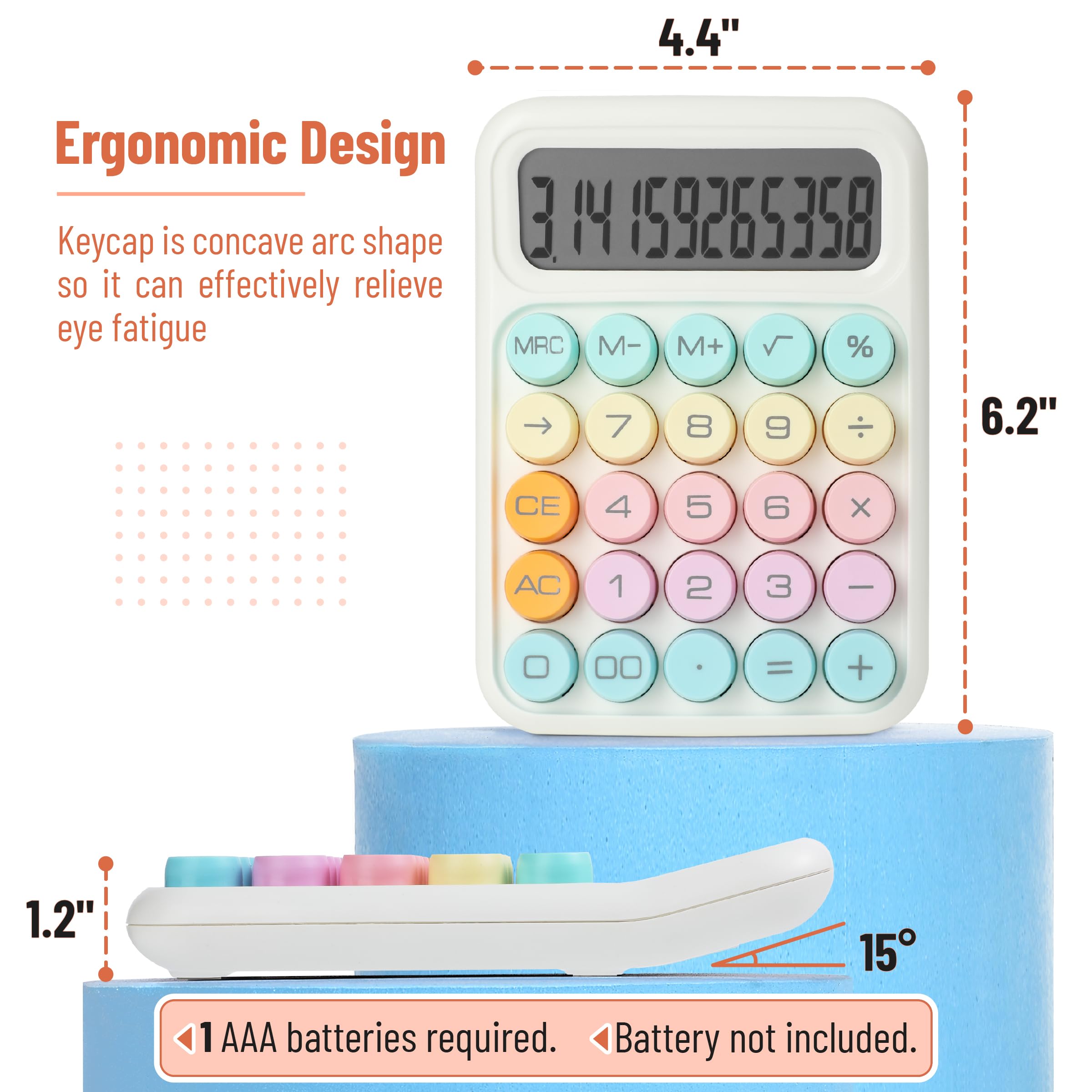 Mr. Pen mechanical switch calculator is equipped with 12 digits, making it ideal for handling calculations with precision and ease. It features a large LCD display that provides clear and easy-to-read numbers, ensuring accurate inputs and outputs at a glance. Designed with mechanical switches and round, colorful keys, this calculator offers a satisfying tactile feel and an eye-catching aesthetic. Perfect for both professionals and students, it’s lightweight and portable, making it suitable for use at home, school, or the office. Operating on just one AAA battery (not included), this calculator is designed with an automatic shutdown feature that activates after 10 minutes of inactivity, conserving battery life and ensuring longevity.