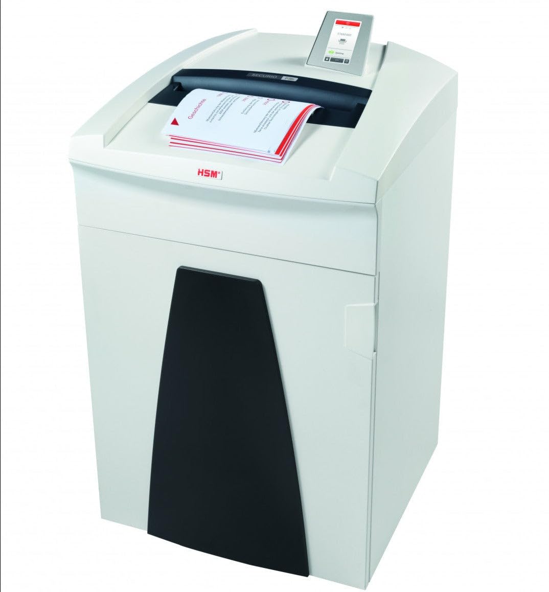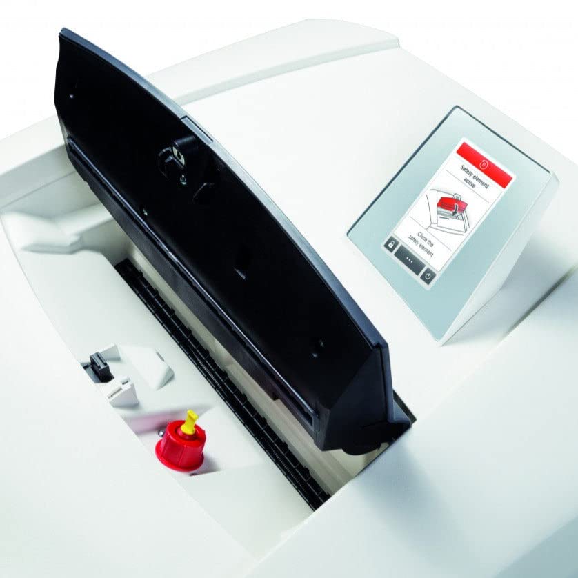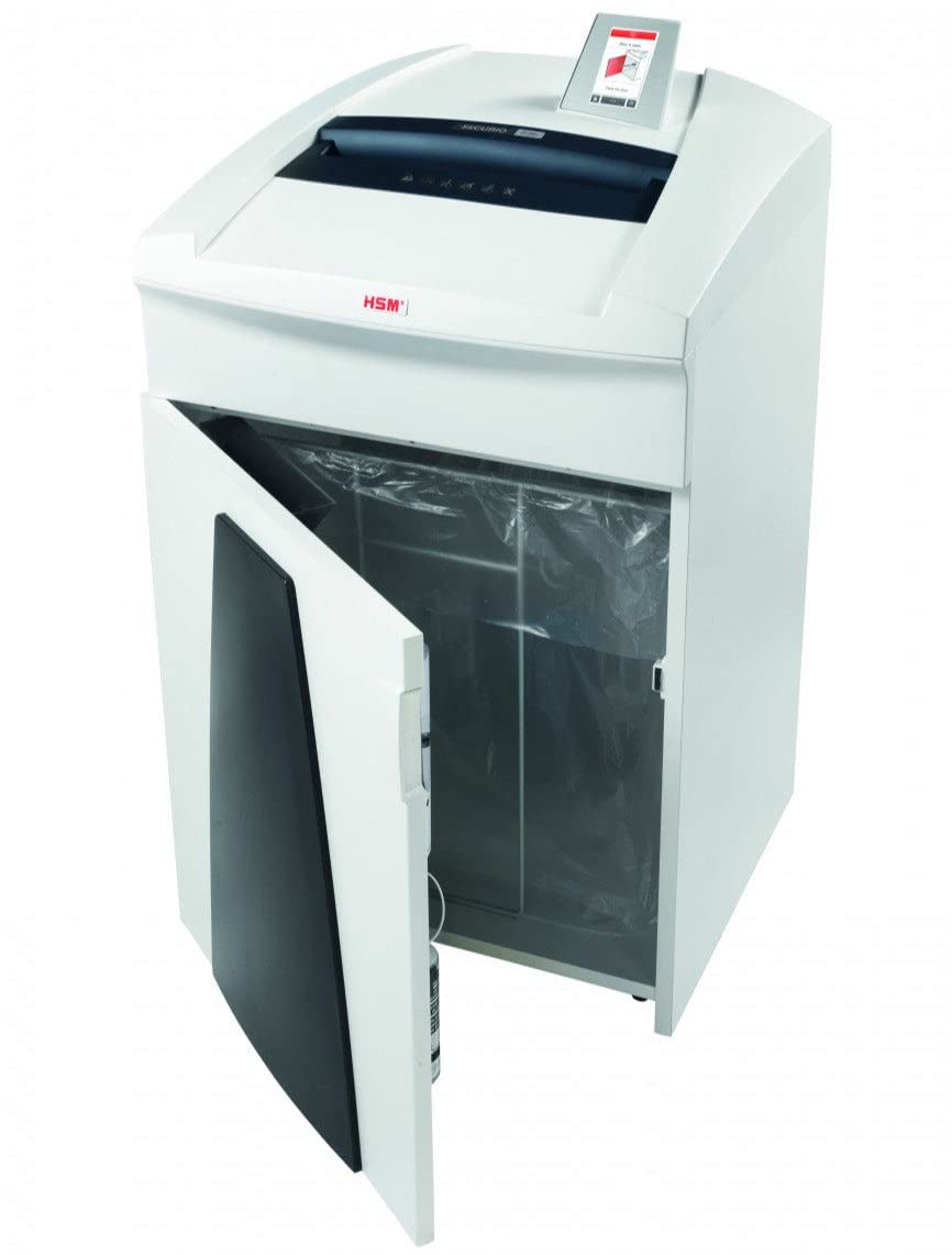 Meets DOD & NSA/CSS 02-01 & 04-02 mandatory security requirements. High quality materials and "Made in Germany" quality for safety and durability complete with a 3 year warranty. Cutting rollers made of hardened solid steel. Uses Energy Management Control System (EMCS) to deal with energy in asensible manner by reducing energy consumption up to 90%. Automatically switches to energy-saving mode in 2 minutes after last use;switches off entirely if not used for 4 hours; temporary mode for small shredding jobs; and permanent mode for large shredding jobs. Equipped with Anti-Jam technology to easily and quickly reverse out paper in the event the machine is overloaded. Operation via touch display with Intuitive operation and multi-language menu selection via the high resolution 4.3" touch display. Relevant information such as operating modes and status reports are displayed. Intelligent paper jam prevention due to the intelligent paper jam prevention feature, the system recognises automatically and quickly whether too much paper has been fed in. The machine goes into reverse or increases the power temporarily and pulls the paper in. Consumable material, machine and contact details can be called up. Removable waste container. Integrated auto oiler. Powerful motor allows for continuous operation. Includes a removable bag frame. Uses a 58 gallon capacity shred bag; Part #HSM2117.