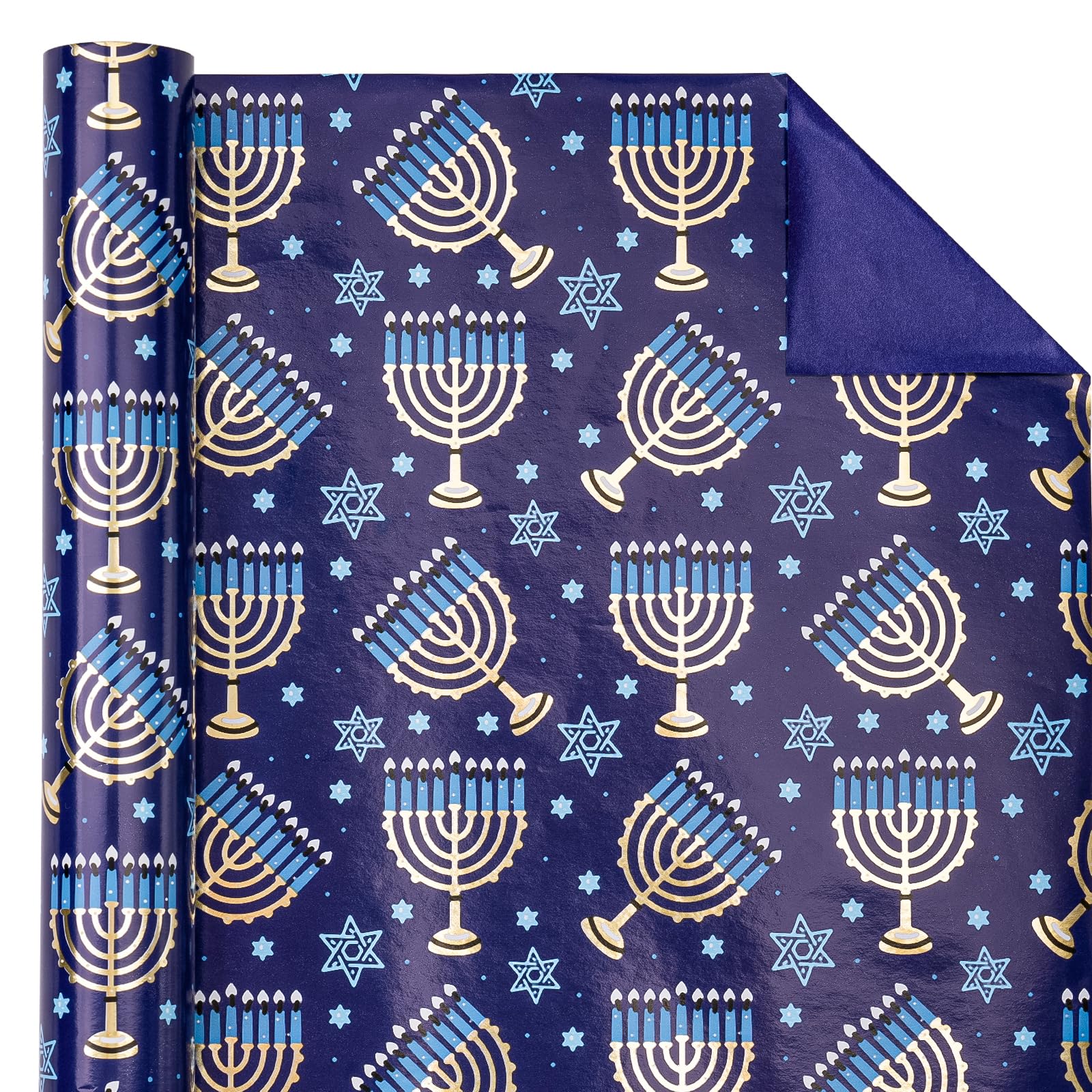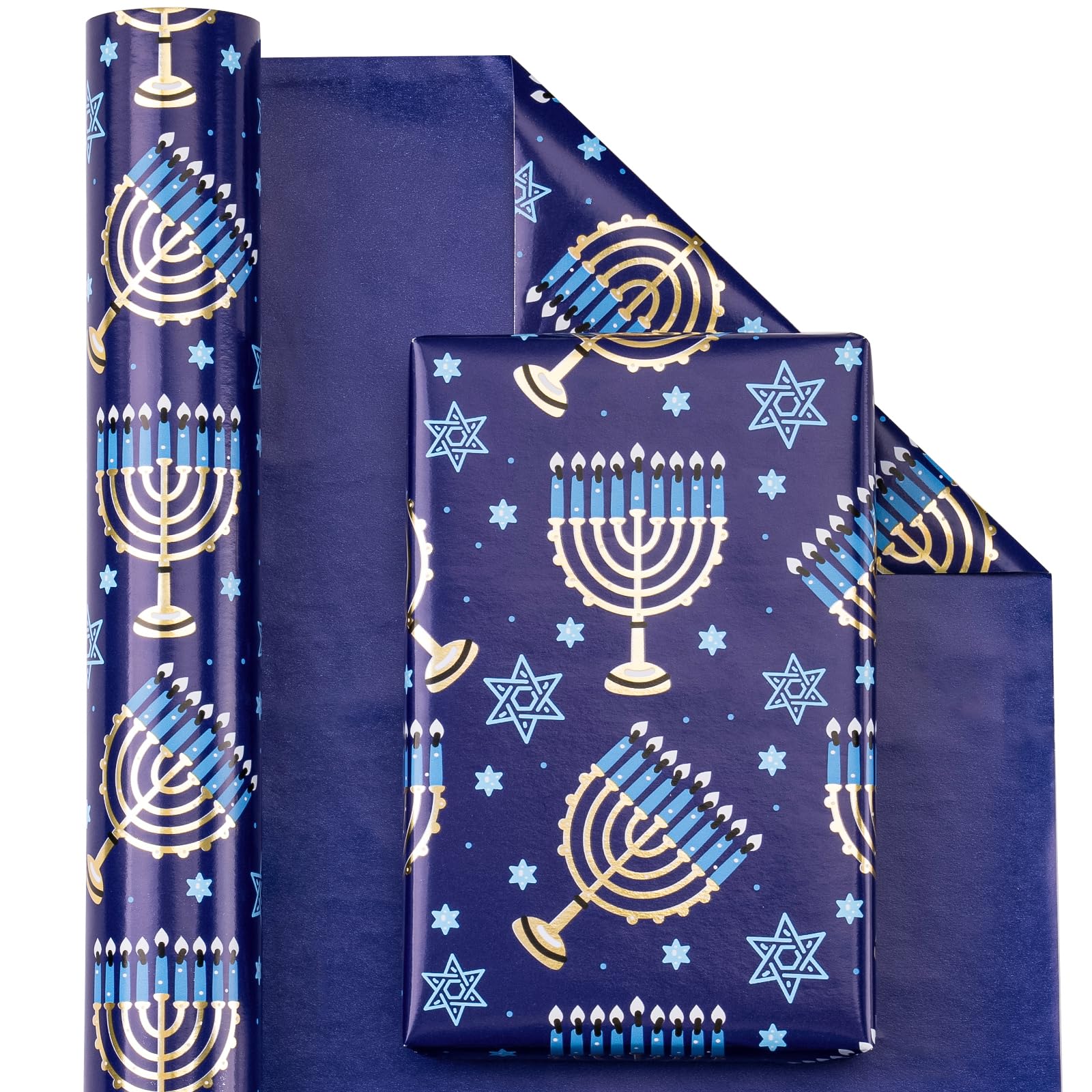 Perfect Size: Each roll measures 17 inches wide x 33 feet long, which provides you with a total of 46.5 square feet of paper. It's perfect for any small or medium - sized gift and is also very convenient to store. Reversible Design: Blue menorah lights with the star of david printed on one side, solid blue printed on the reverse. Two different designs make unique and varied gift presentations easy. Premium Quality: Created with high-quality paper materials, thick and not easily tear or rip. Item came with shrink film to prevent wrapping paper from scratches and reduce dust. Use All Winter: Whether it's the joyous celebration of Christmas or the holiday season filled with family gatherings and gift - giving traditions, it is an outstanding choice. It is also great for decorating the Christmas tree. Wrap Your Love for Christmas: You can wrap your love with our special Christmas wrapping paper, adding a splash of color to all of your gifts. Your family, children, and friends will feel your sincere Christmas wishes this holiday season. Quality Customer Service: Any question about products or orders, please feel free to contact the customer service, we will try our best to solve the problem.