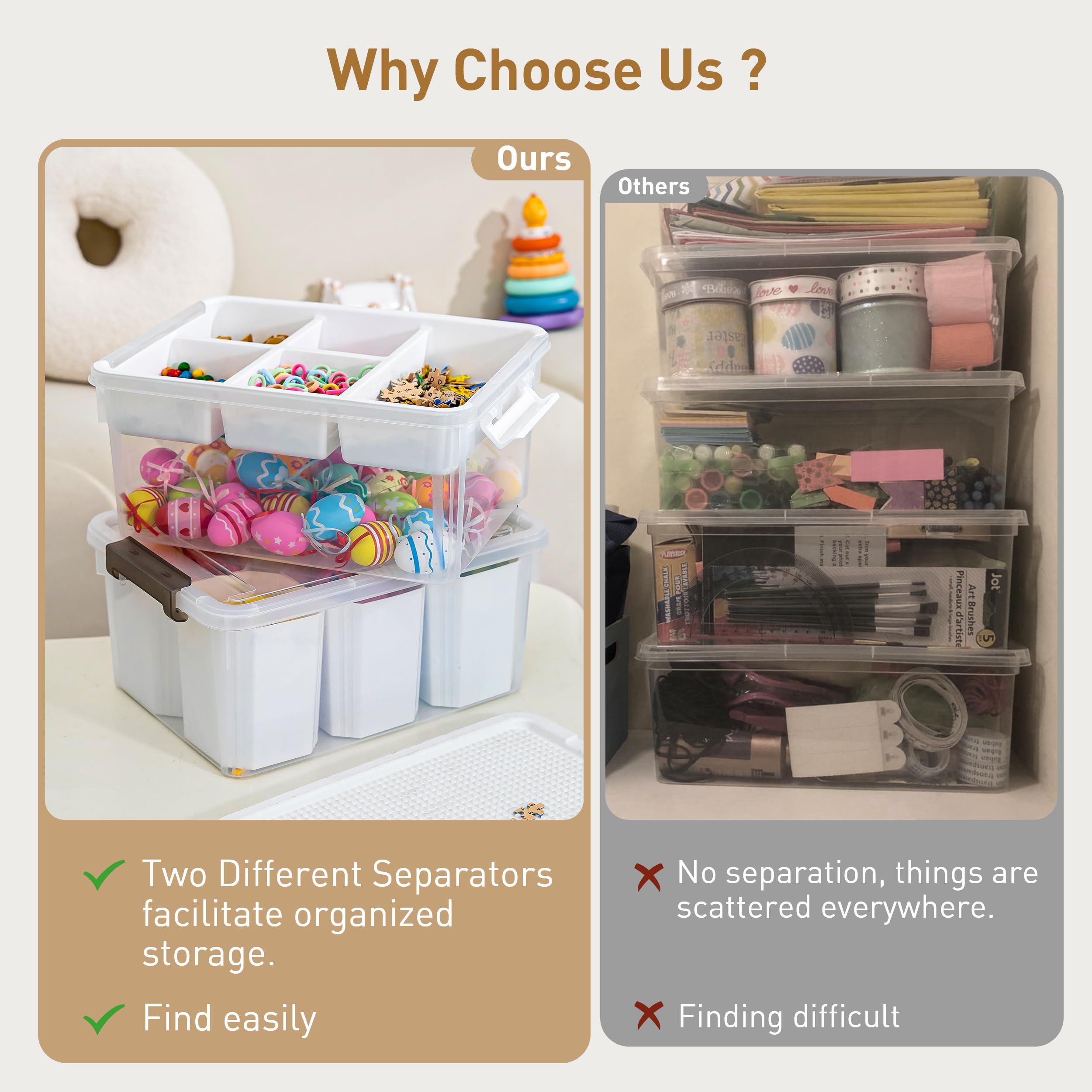 【Multi-layer separation design】The storage box has 5 partition trays that can be placed or taken out according to your purpose and type. The removable tray keeps some of your smaller items neat and organized, and the extra depth allows for larger, bulkier supplies;