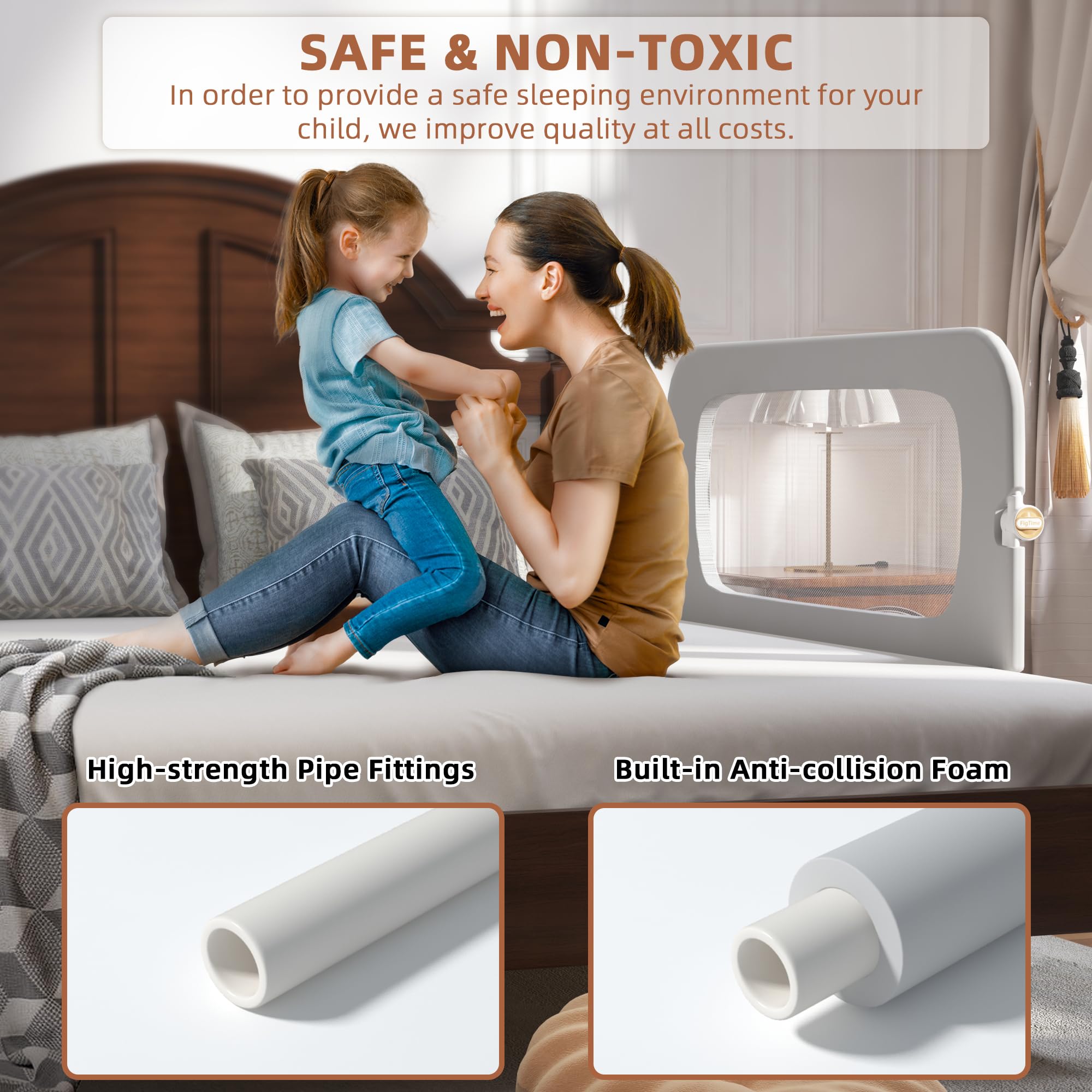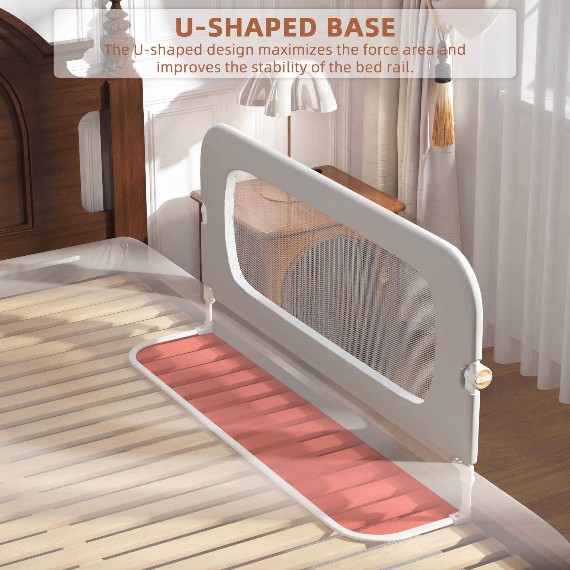 【SUPER STABILITY】Our baby bed rail guard base uses a U-shaped design to maximize the force-bearing area. No matter how your child moves and plays, it can ensure that the bed rail is fixed in place night after night. We have strengthened the thickness of the pipes to improve the overall stability and lifespan to ensure that it can withstand the rigors of daily use. Choose FigTime and enjoy peace of mind. Because you know your child is safe.