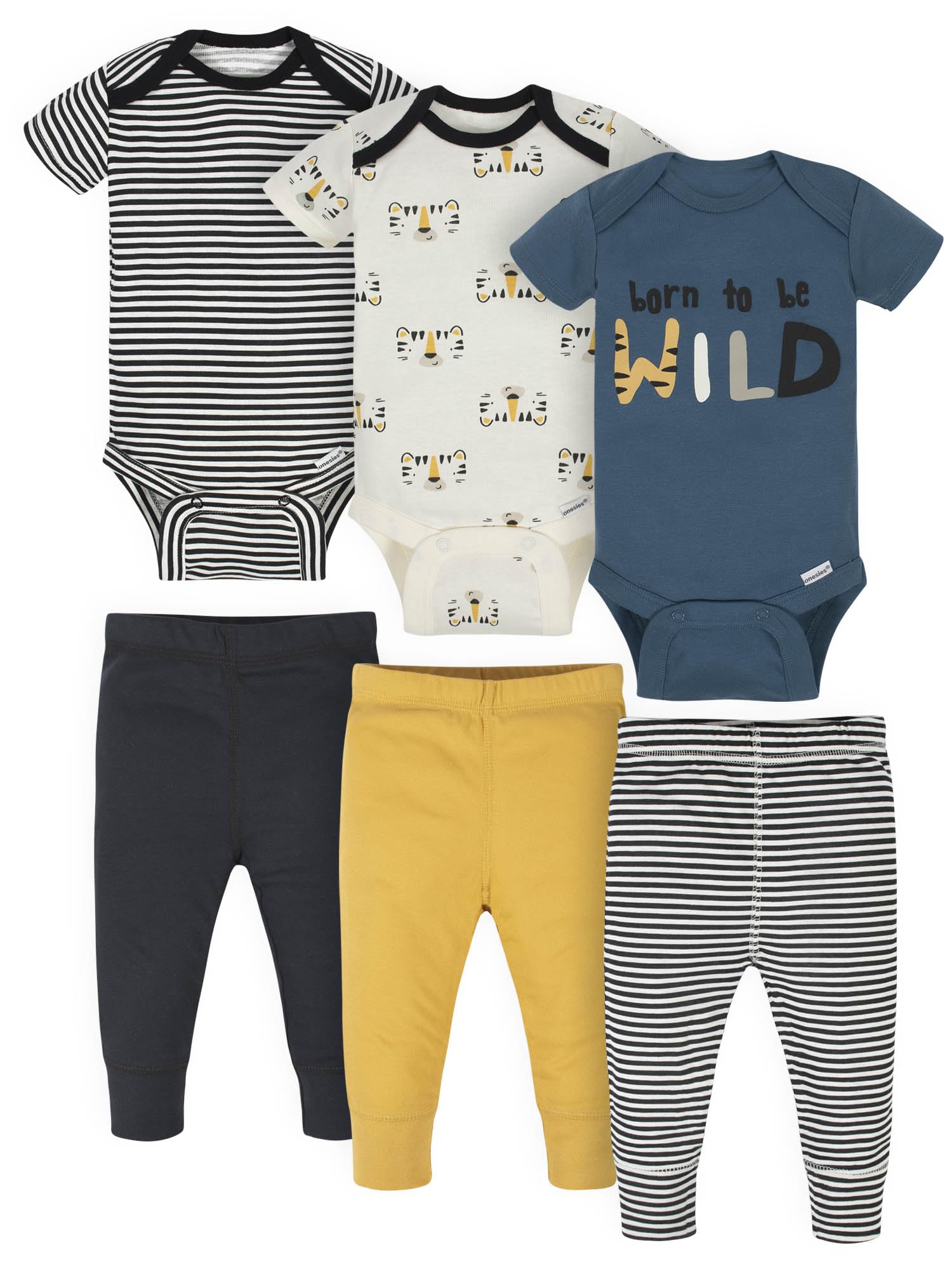 Includes three Onesies Brand bodysuits & three pairs of pants