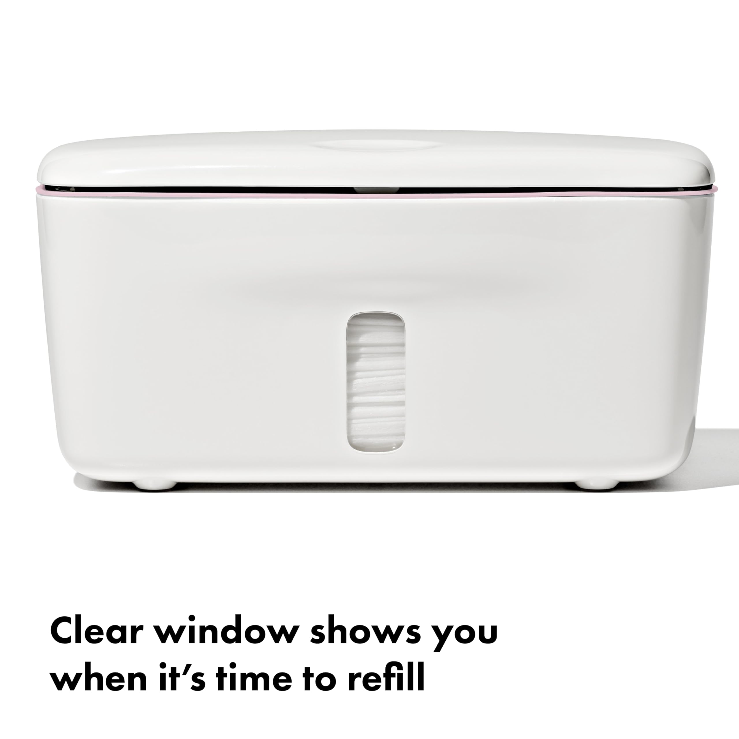 Designed for Parents : This refillable wipes container is designed with a clear indicator window in front, so you know when it's time for a refill. And the nonslip feet and weighted plate keep this baby wipes container in place.