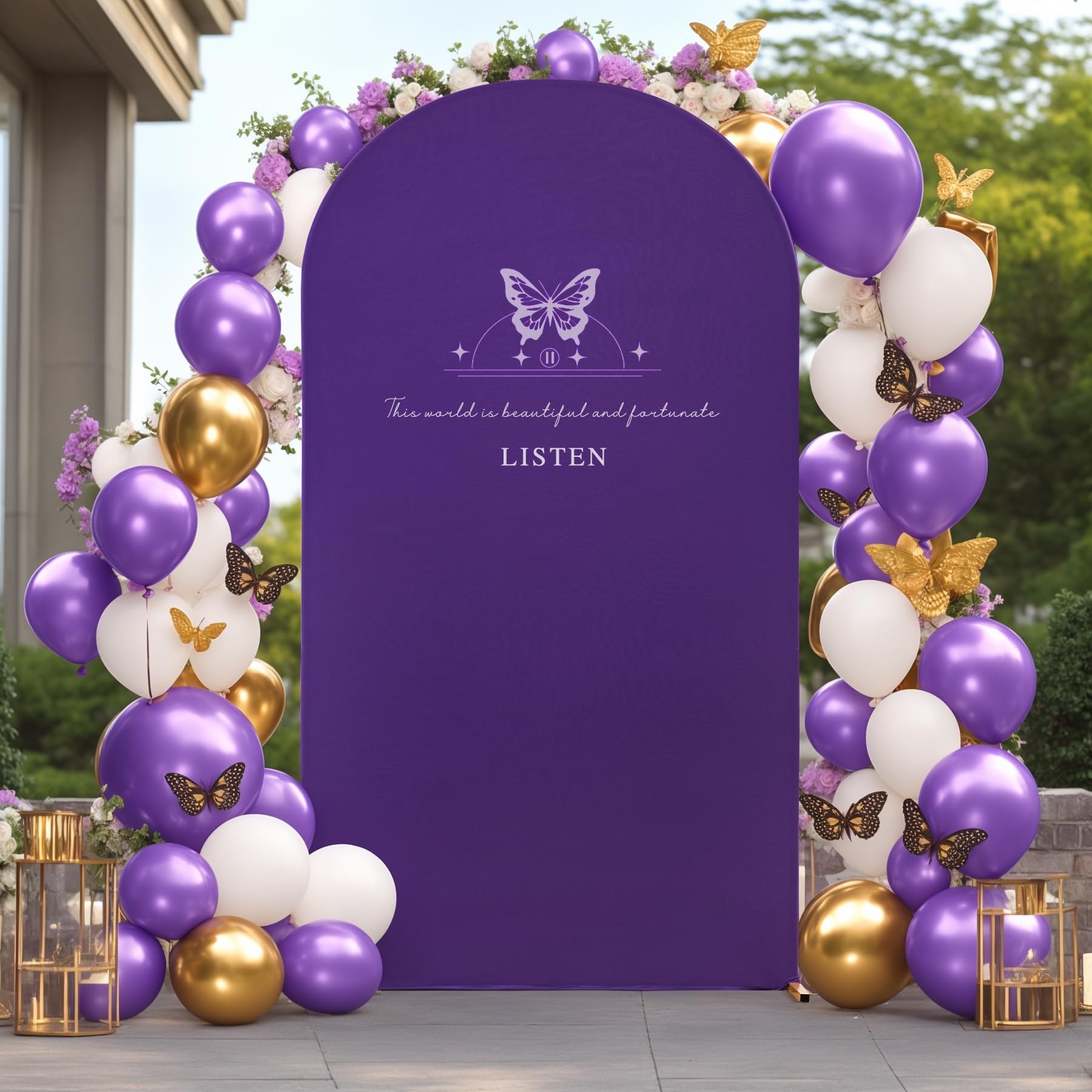 【Double-sided Arch Cover Size】- Fit on 6.6 FT length x 3.3 FT width Chiara backdrop stand perfectly, slipping over the arch frame with ease. Used as your unique photo background for wedding ceremony birthday party baby shower banquet