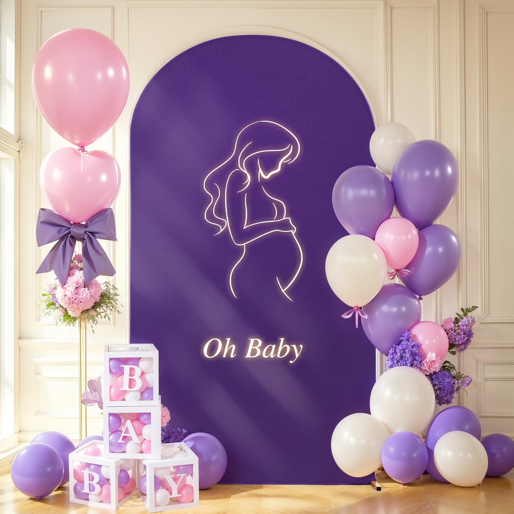 【Arch Decorations for Parties】- The spandex fitted wedding arch stand covers can be decorated around with flowers, balloons and garlands as you want. Best arch backdrop cover for baby shower, bridal shower, wedding, birthday, anniversary, baptism, festivals, gender reveal photo shoot, events or family gathering for indoor and outdoor shooting
