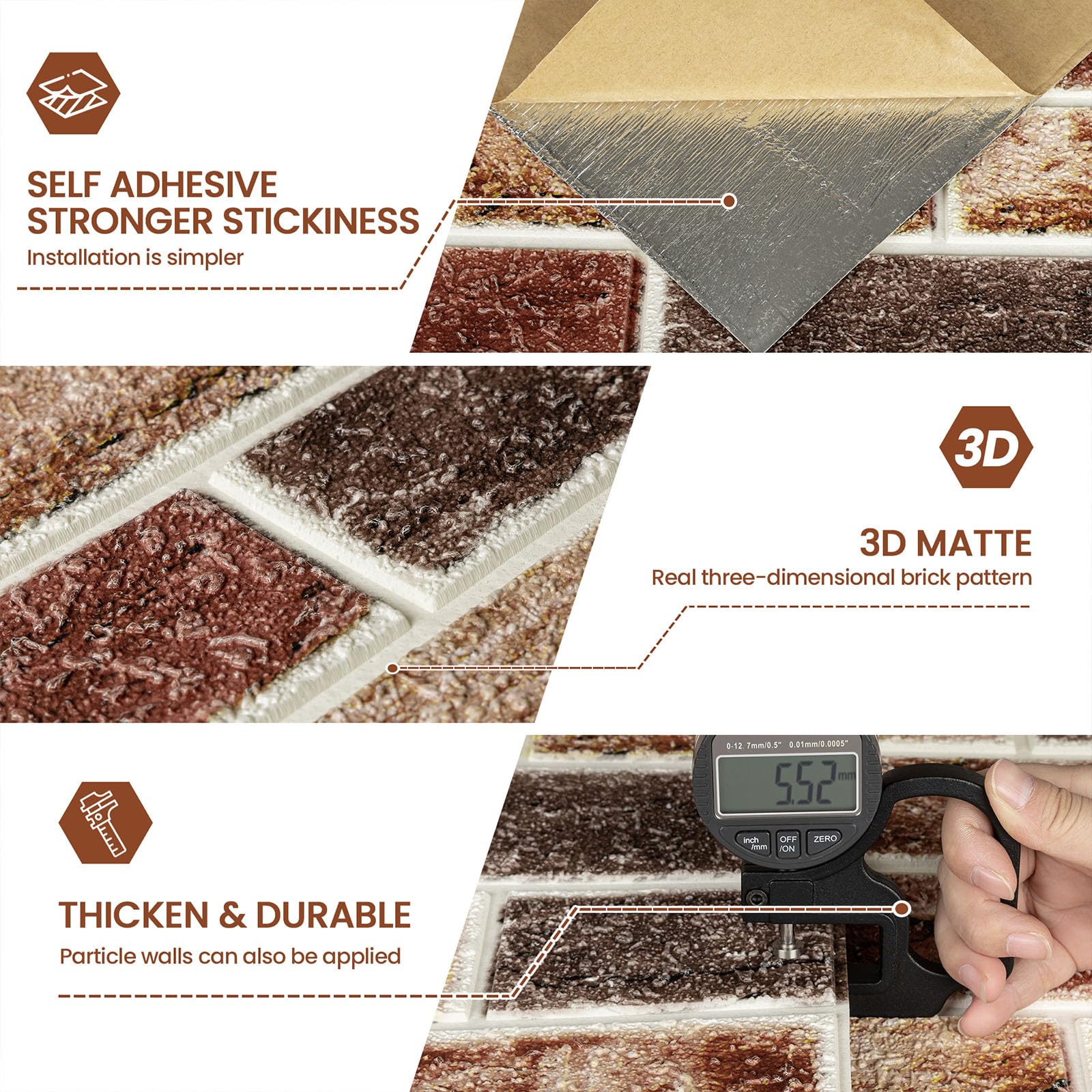 Simple Peel-and-Stick Application: No tools or messy adhesives are required! These self-adhesive panels are easy to apply by peeling off the back and sticking them directly to any smooth, flat surface. Whether for your interior or outdoor walls, these peel-and-stick faux stone or brick tiles are the perfect way to upgrade any room, from the living room to the kitchen, with no hassle