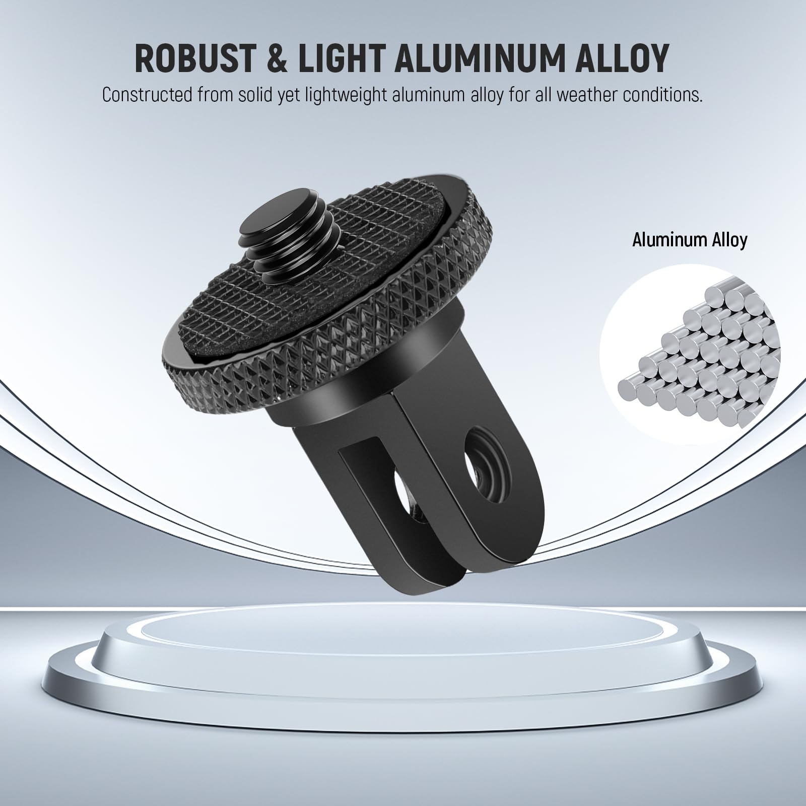 【Compact & Sturdy】 Made from CNC aluminum alloy, the mount adapter is compact, lightweight, and robust, ensuring easy portability and long lasting use. The nonslip rubber pad enhances friction and prevents sliding during use