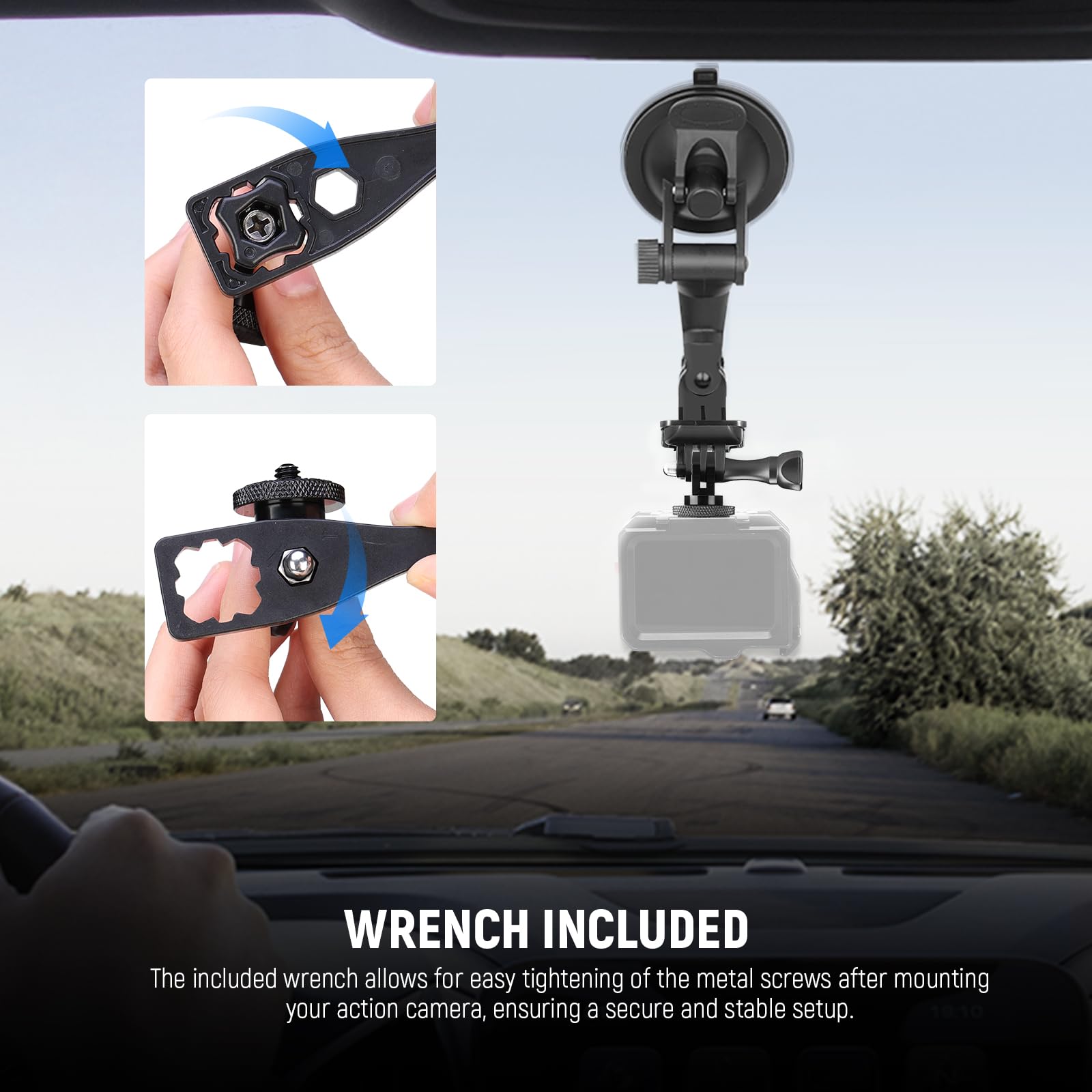 【Wrench Included】 The included wrench allows for easy tightening of the metal screws after mounting your action camera, ensuring a secure and stable setup as content creator essential and influencer must have photography gear