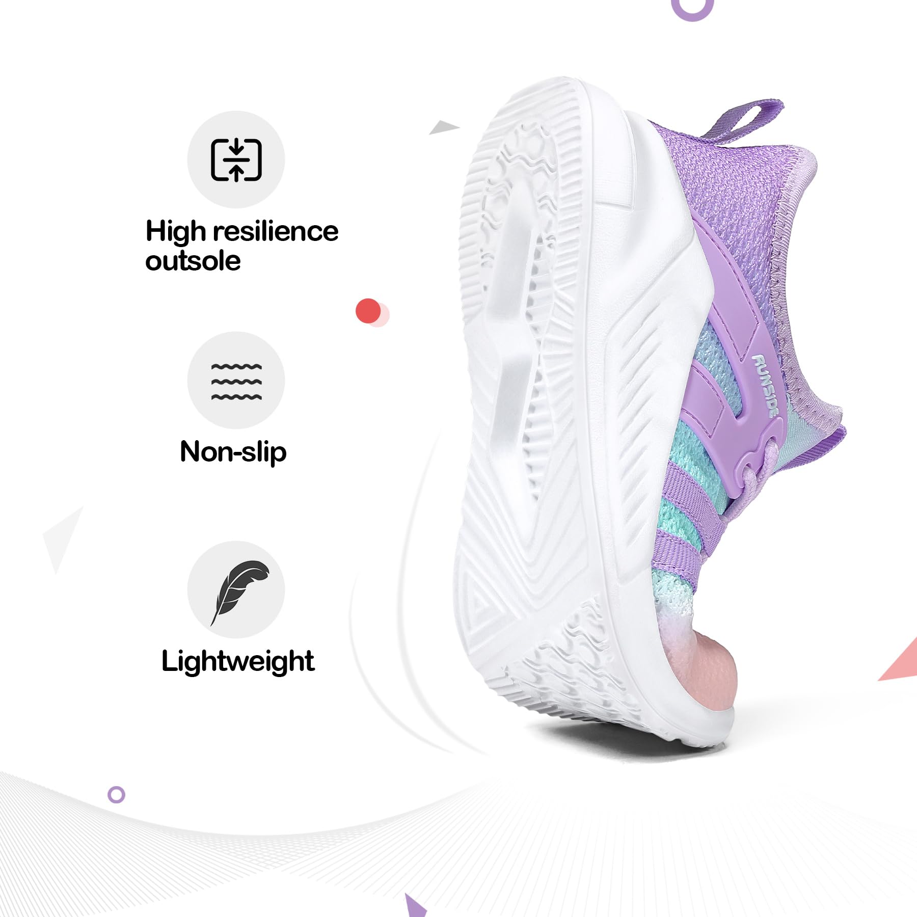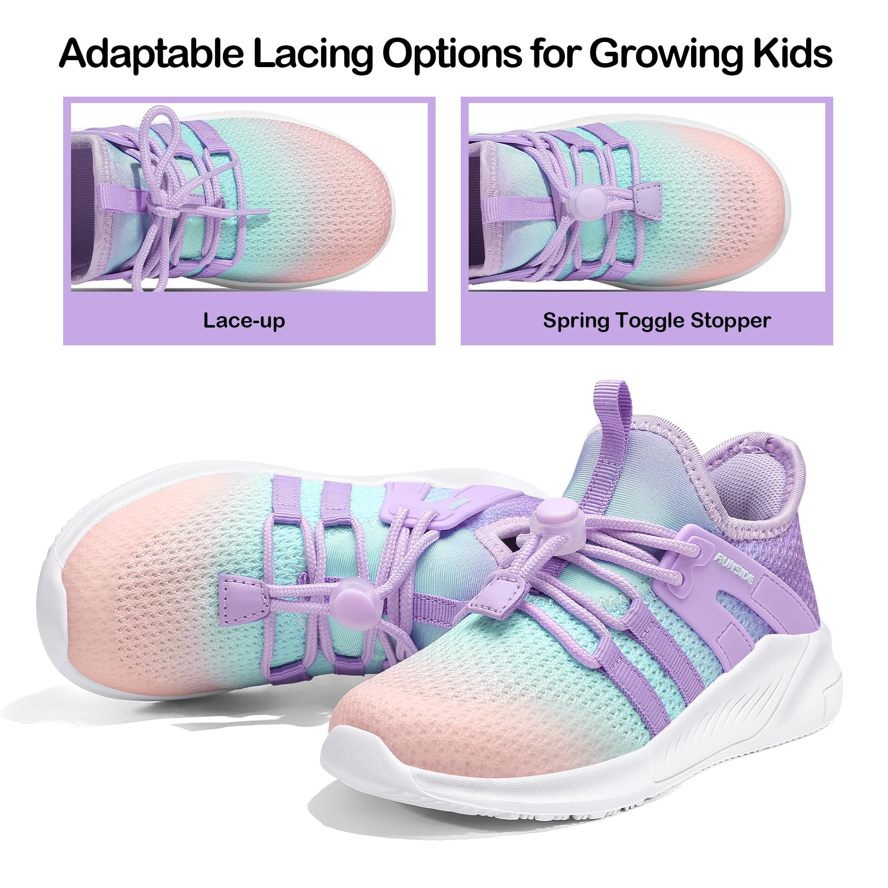 Eye-catching Color: Let your child stand out on the playground with our vibrant gradient color that captures their energetic spirit; The stylish blend of colors is sure to make these shoes a favorite in their wardrobe