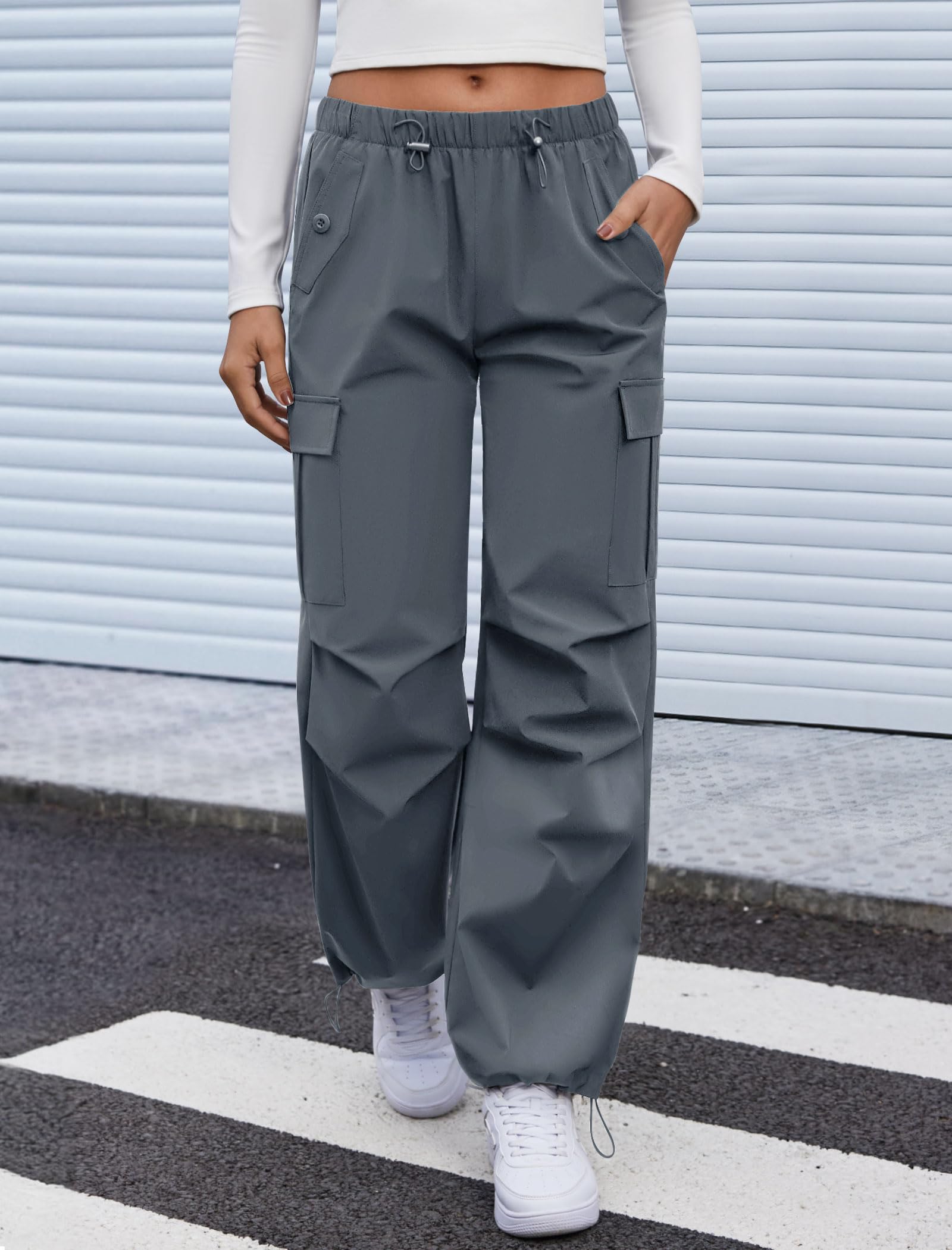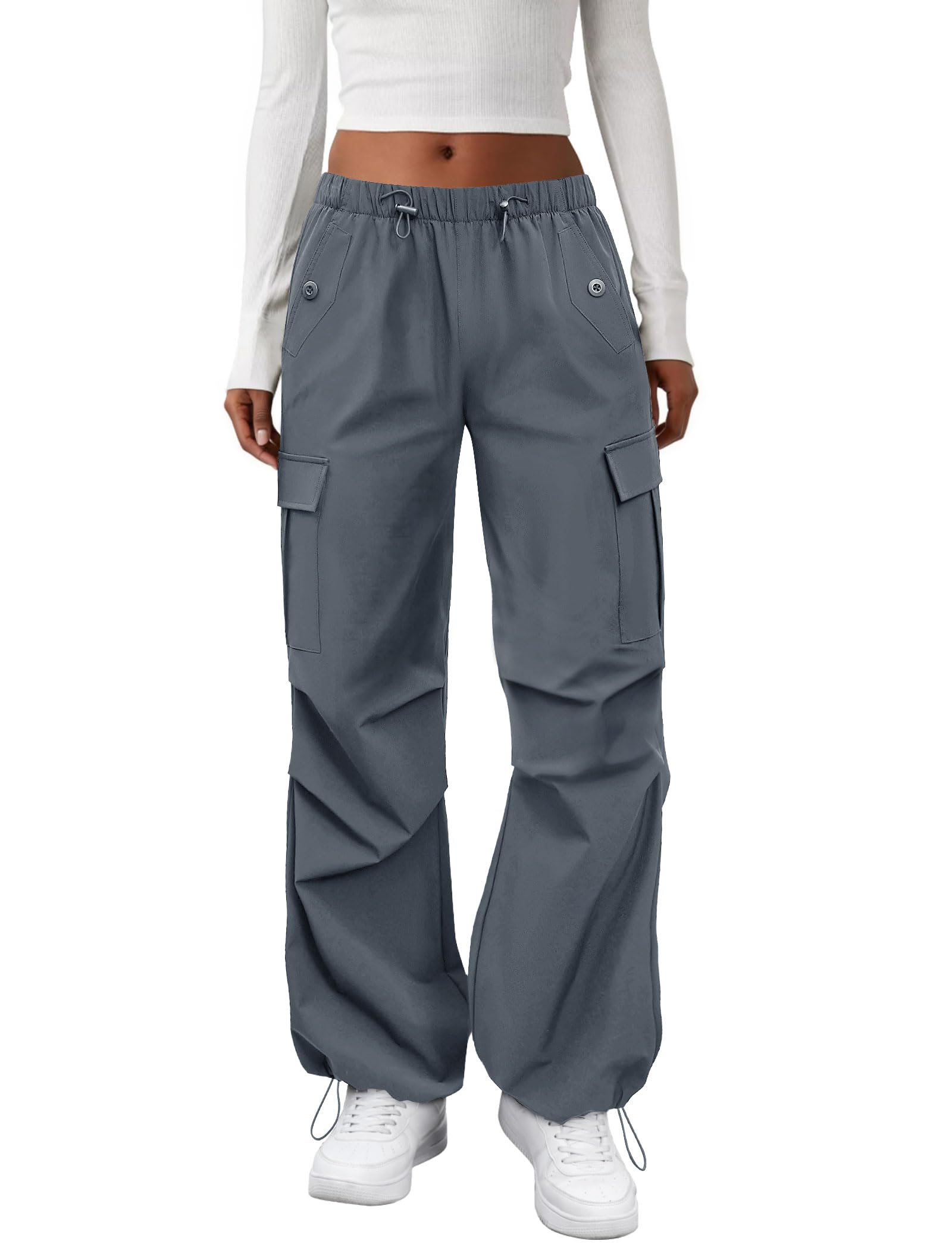 ADJUSTABLE WAISTBAND & BOTTOMS: Featuring an adjustable waistband and cuffs, these mid-waisted parachute pants provide a customizable fit that ensures both comfort and style. Whether you're trekking uphill or relaxing by the campfire, they move with you