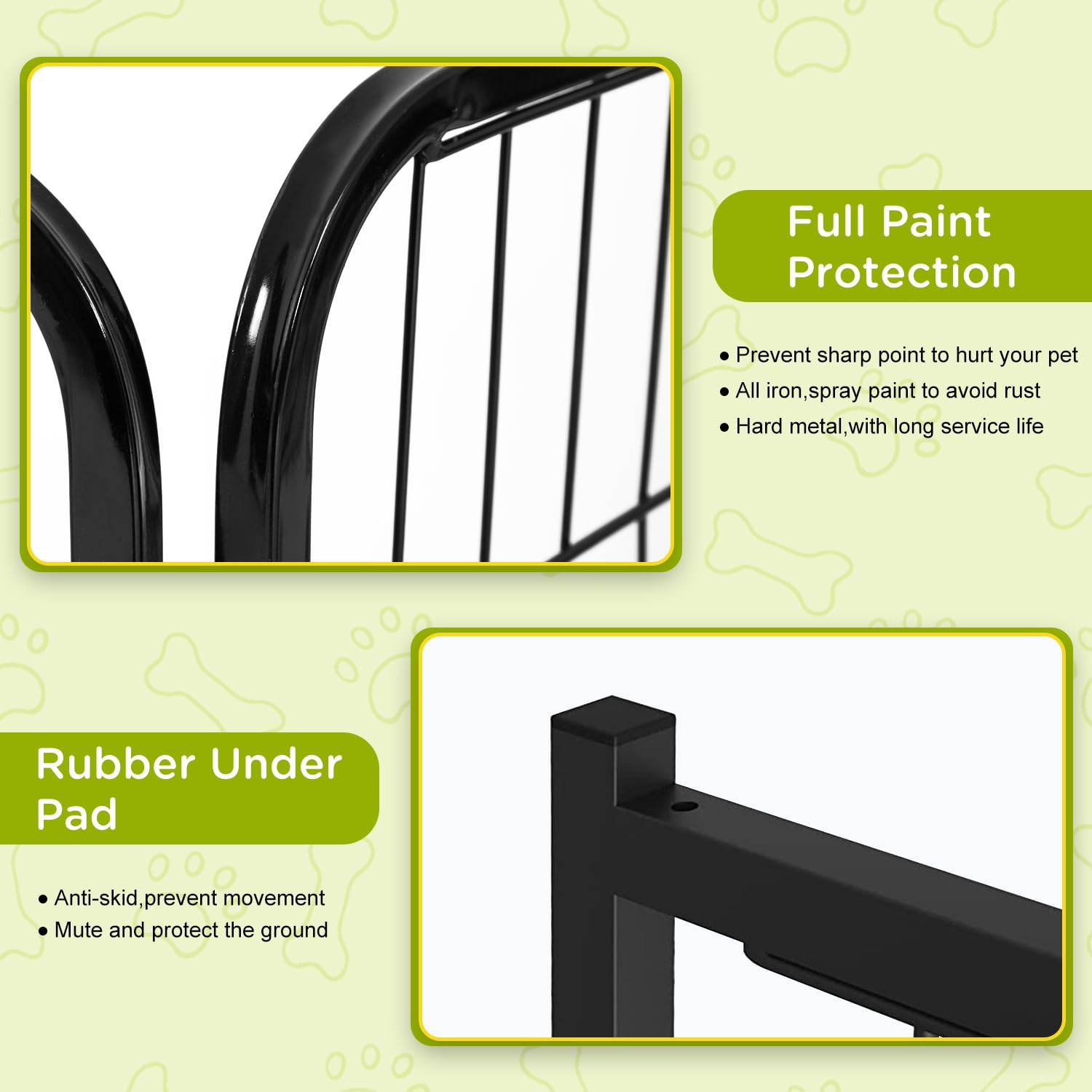 DURABLE METAL FENCE PANELS: Heavy-duty iron with a rust-resistant finish makes this fence strong and secure. Use the sturdy fence panels as a dog fence outdoor for yard or indoor setup.