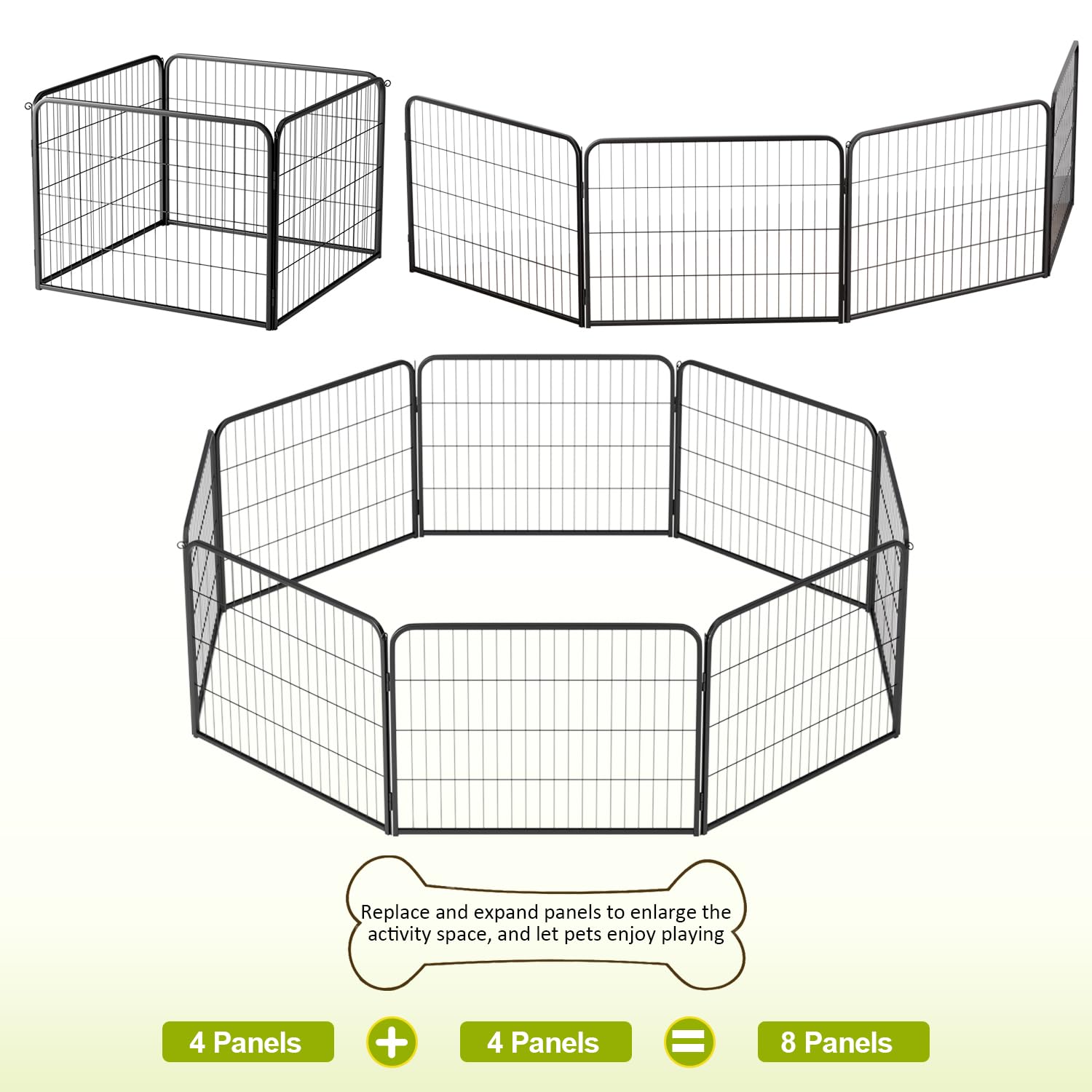 USE AS EXTENSIONS OR REPLACEMENTS: These strong durable metal fence panels easily connect to expand your existing dog playpen or replace damaged sections, keeping your pet’s area safe and secure.