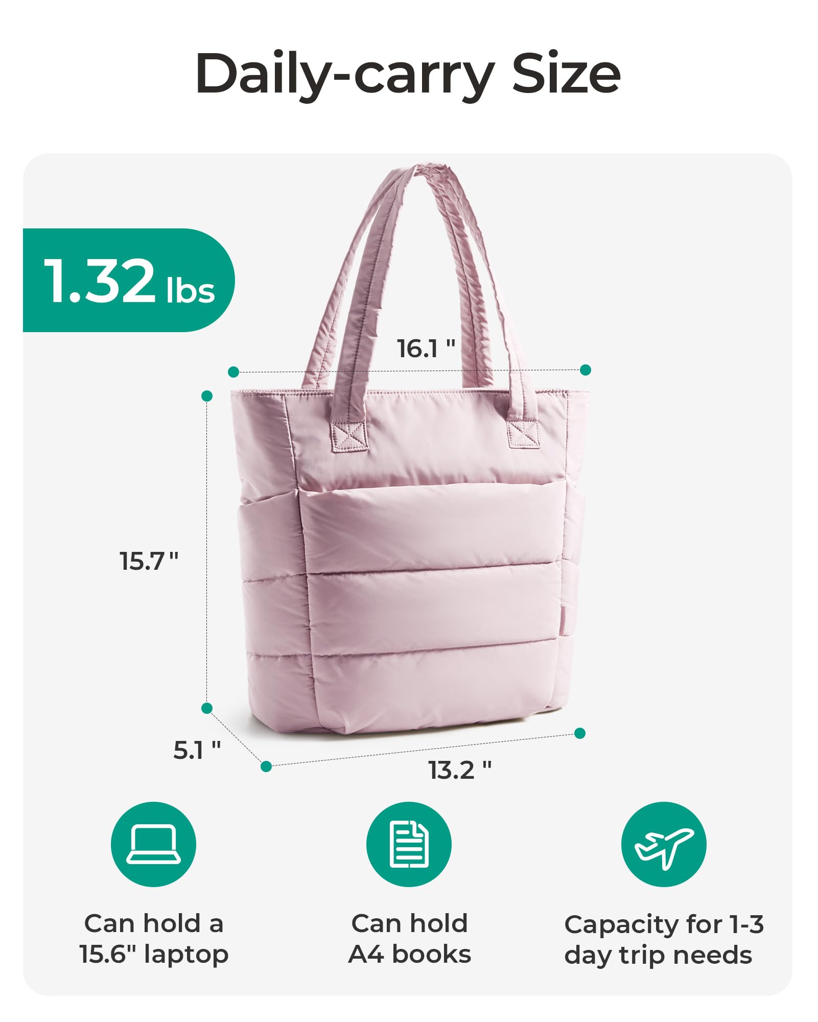 Ultra Lightweight Material : Standard Size and Slim Size weighs only 0.99 pounds. Small Size weighs only 0.79 pounds. Made of durable, soft and light taslan fabric. The puffer tote bag is easy to carry. Good choice of travel bag.