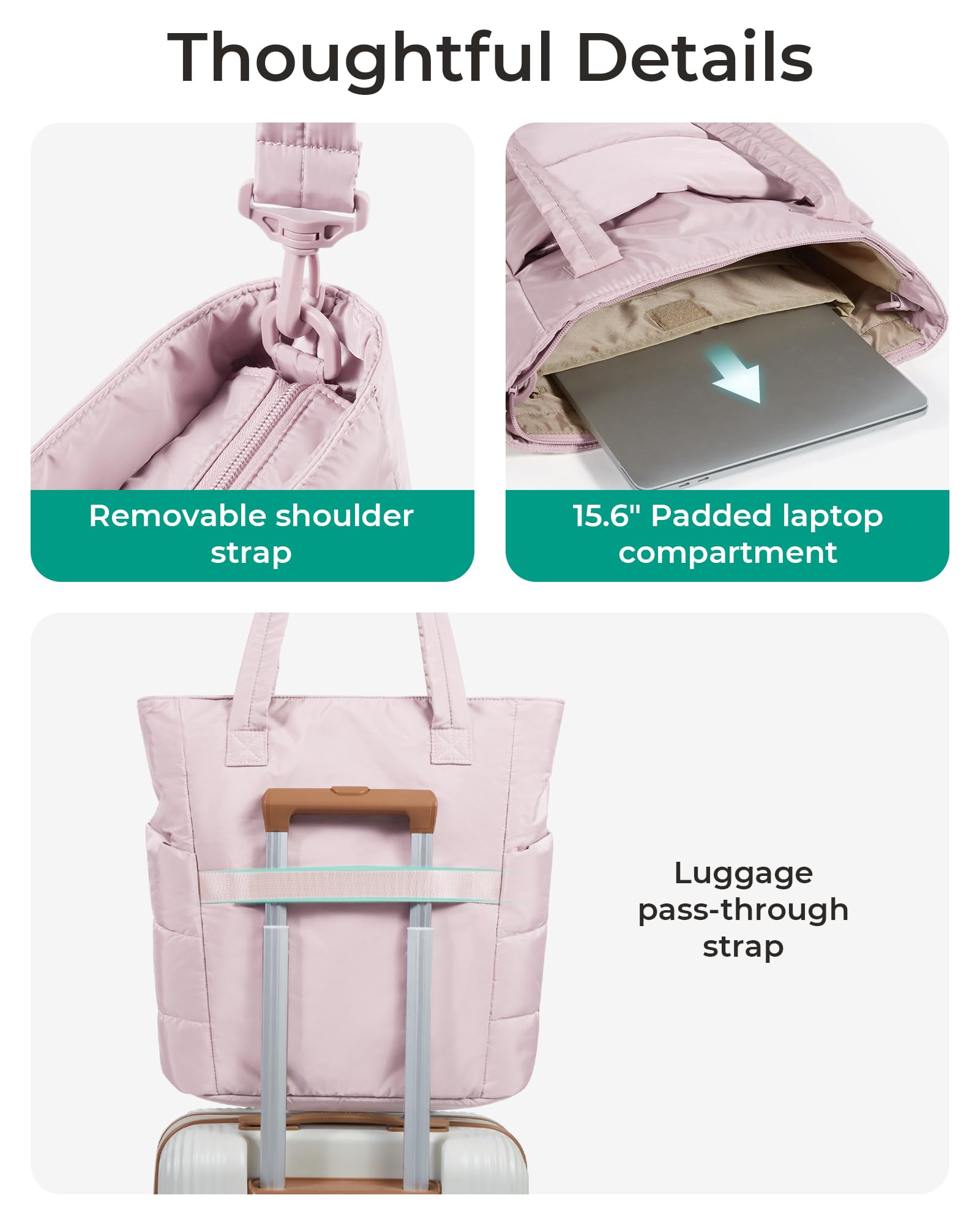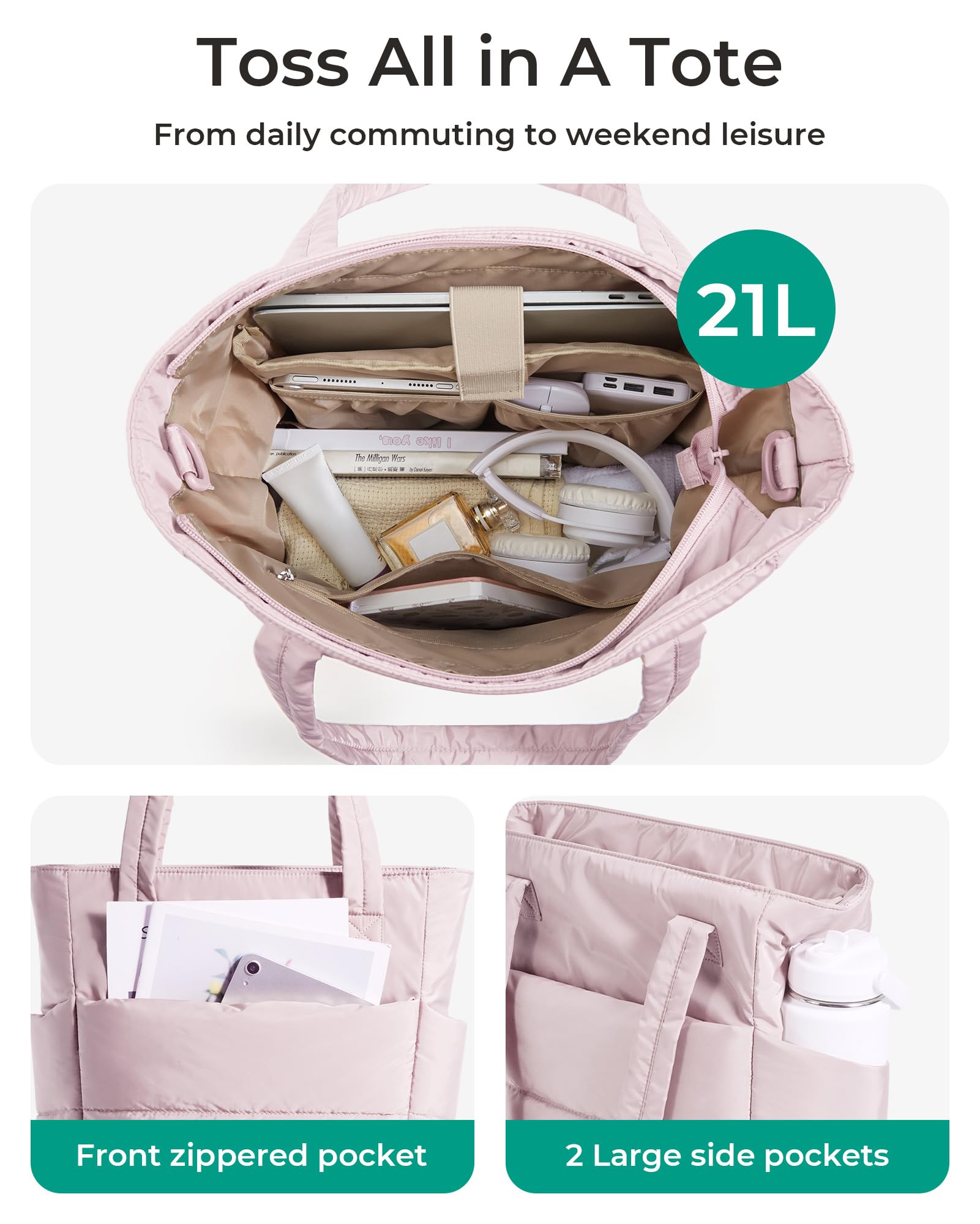 Versatile Tote: It can be used as a work bag, laptop bag, gym bag, beach tote bag, casual shoulder bag, or travel bag. Suitable for work, beach, travel, shopping, gym and more occasion