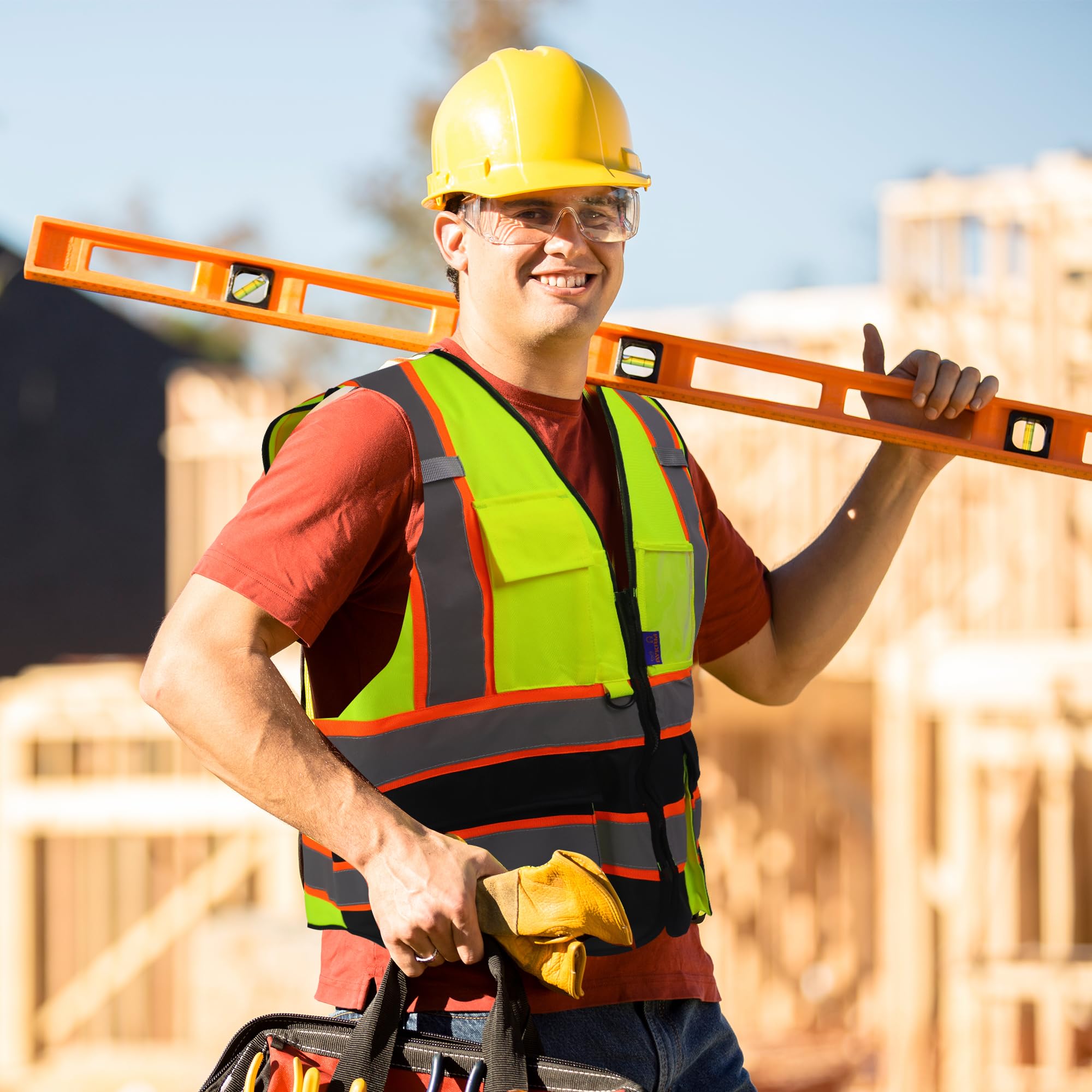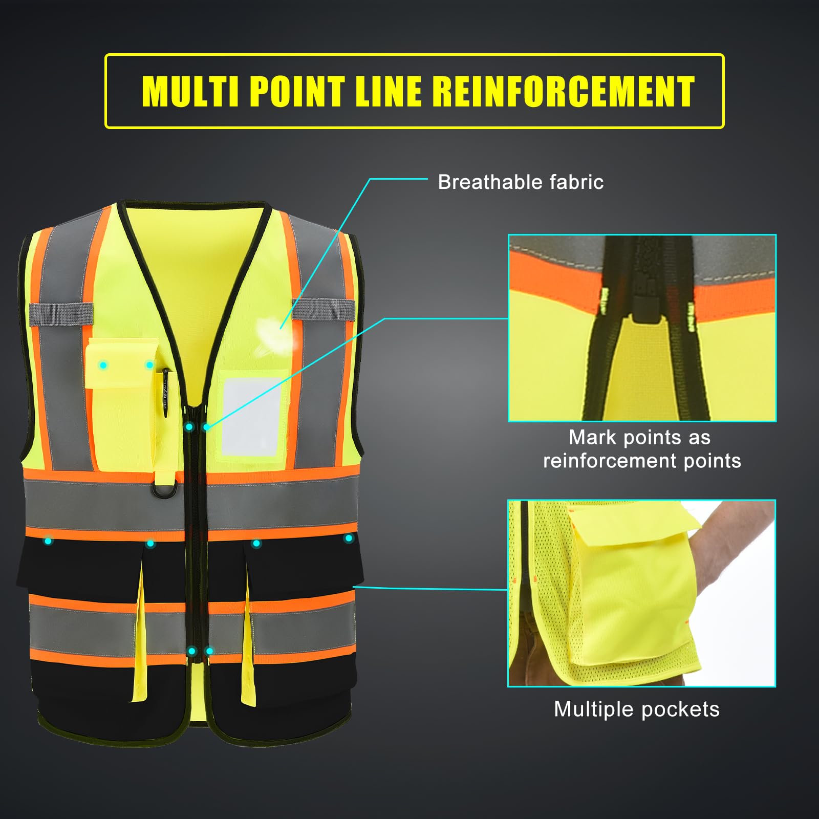 【High Visibility】HIGH VISIBILITY APPAREL: Unisex safety Vest with high visibility reflective tapes. Its Four 2-inches wide Hi-Vis retro-reflective tapes outlined by the radiant and bright yellow orange extended edge trim to maximize your visibility in a daylight and low light working environment.