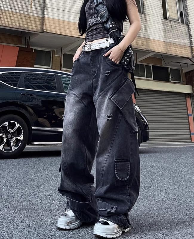 Features:Wide leg jeans/womens cargo jeans/jean cargo pants women/baggy pants women/mens cargo pants/low rise jeans for woman/y2k jeans men/grunge jeans/goth jeans/emo jeans