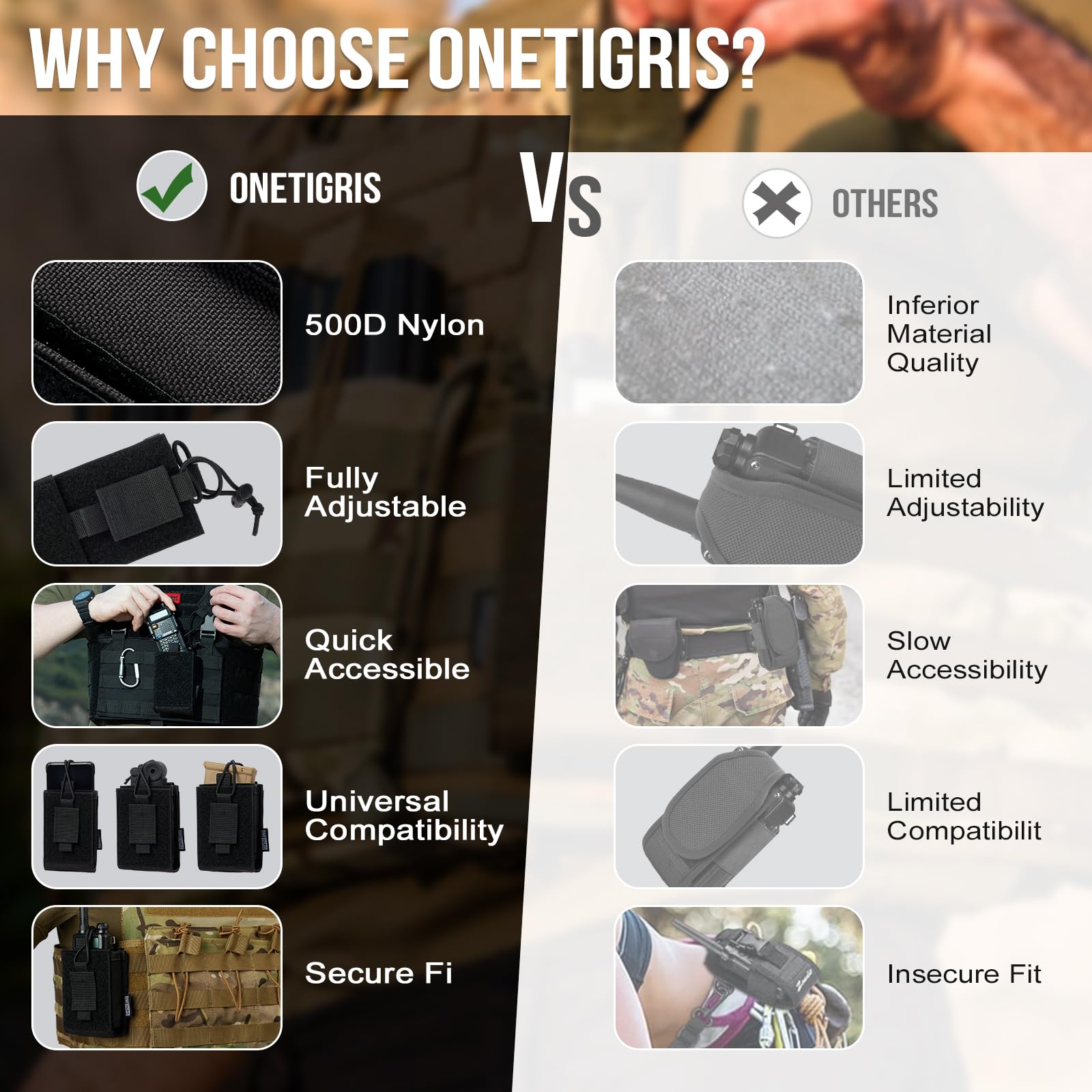 OneTigris Universal Radio Pouch (1 Pack): It extends to 6.3" by 2.7" by 1.1" to accommodate most standard radios and is compatible with radios such as the BaoFeng BF-F8HP, UV-5R (with BL-5L 3800mAh Li-ion Battery Pack), UV-5X3, Motorola T800/T200/T200TP/T260/T260TP, Retevis RT22/RT68, or similarly sized radios.
