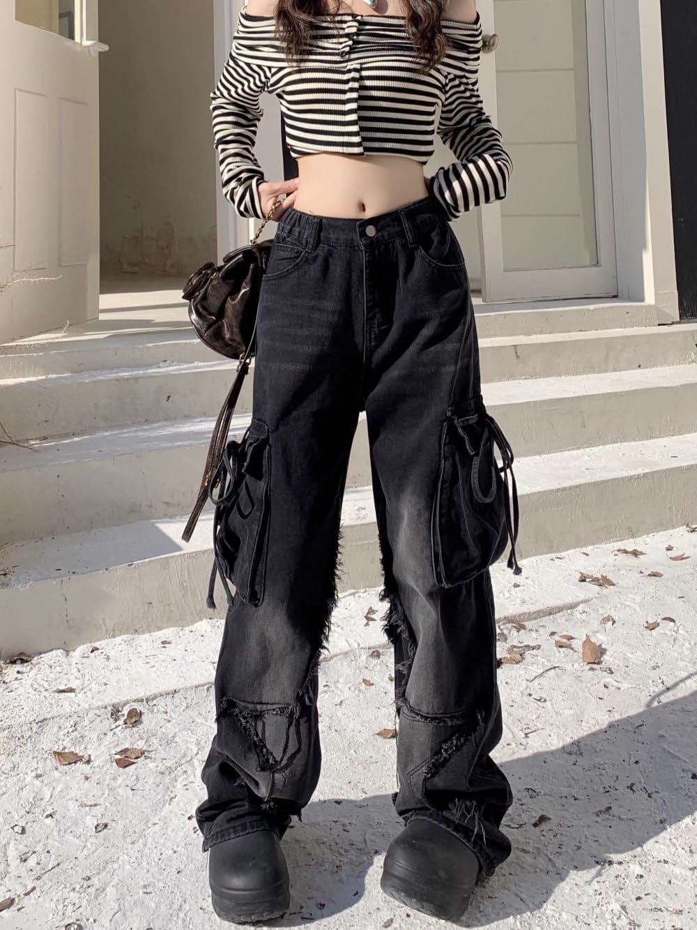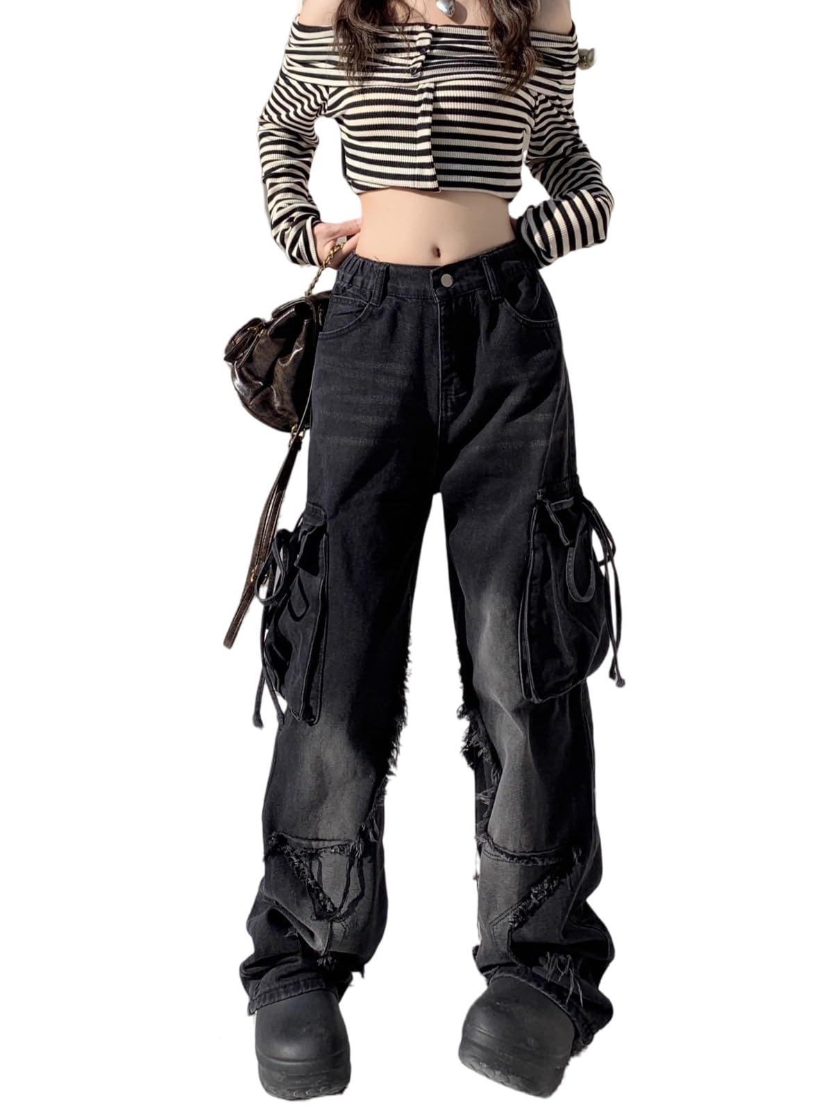 Unique Butterfly and Frayed Design Accents: Choose from styles featuring frayed butterfly appliqué, unique star patch rip detailing, or bold torn seams. Each pair channels a different version of Y2K fashion—from dreamy fairycore to rebellious grungecore. Very suitable for social media, campus life, or casual daily wear.